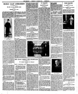 De kunst is alleen om op peil te blijven. “De Blauwe Vogel” begon goed, maar herhaalde zich, zakte in; dat is het groote gevaar van het succes. Zoo ook bij een massa talentvolle acteurs; ze hebben een baas noodig, anders komt er niets van terecht. Het is onzin om te zeggen, dat ik alleen de revue ben; ik kan zonder de omlijsting van de revue absoluut niet spelen zooals ik spelen moet. De revue hoort bij mij, zooals een lijst om een schilderij... En daarom: ik ga niet naar Hollywood, en ik heb ook dankje gezegd tegen den manager van Grock, die mij wilde engageeren. Ik behoor bij het Hollandsche publiek.’