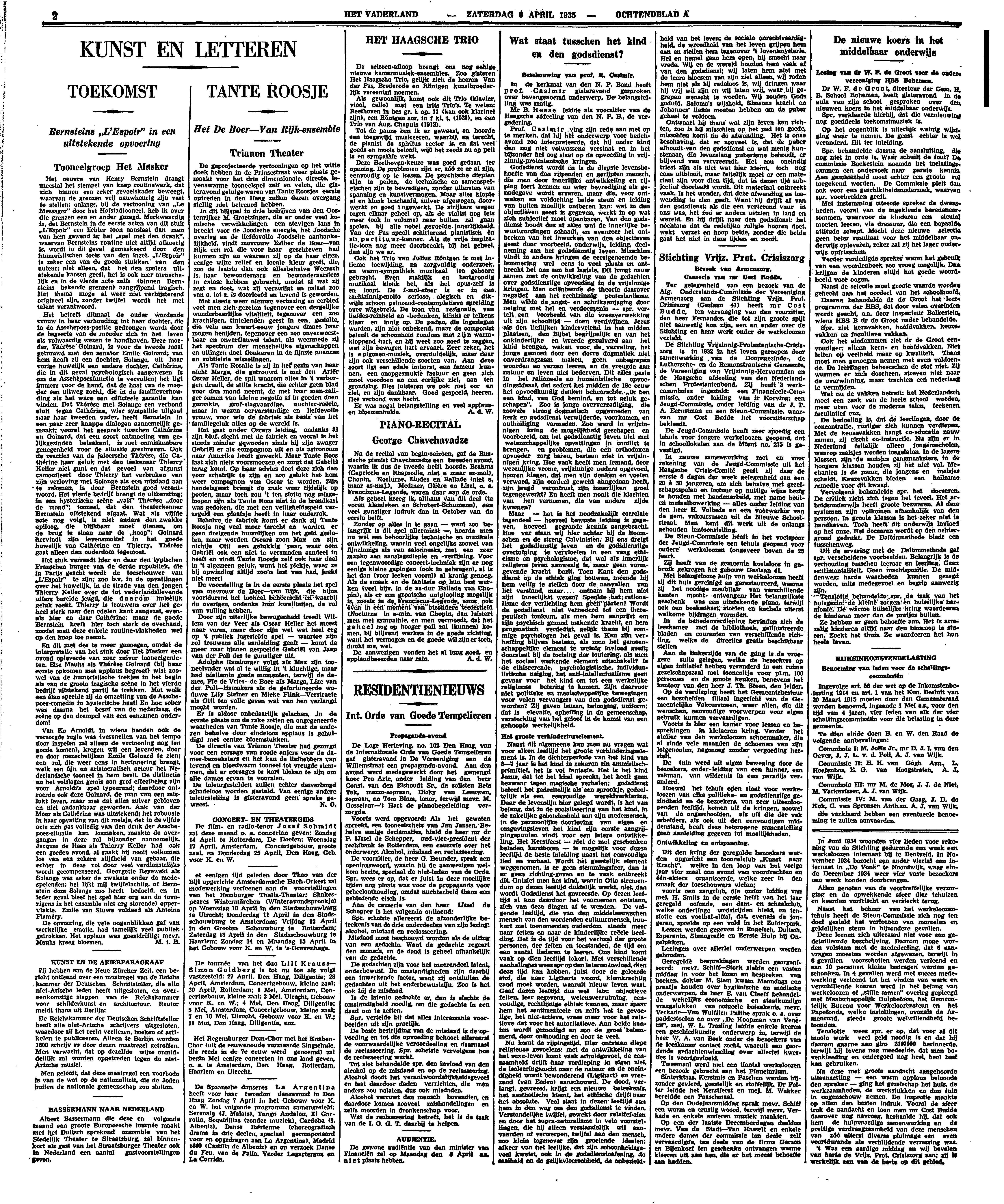Het oeuvre van Henry Bernstein draagt meestal het stempel van knap routinewerk, dat zich binnen een zeker gevoelskader beweegt, waarvan de grenzen vrij nauwkeurig zijn vast te stellen; onlangs, bij de vertooning van ‘Le Messager’ door het Hofstadtooneel, heb ik over die grenzen een en ander gezegd. Merkwaardig is, dat Bernstein in de eerste acten van dit stuk ‘L'Espoir’ een lichter toon aanslaat dan men van hem gewend is; het ‘spel met den draak’, waarvan Bernsteins routine niet altijd afkeerig is, wordt in dit geval gemaskeerd door den humoristischen toets van den inzet. ‘L'Espoir’ is zeker een van de goede stukken van den auteur; niet alleen, dat het den spelers uitstekende kansen geeft, het is ook zeer menschelijk en in de vierde acte zelfs (binnen Bernsteins bekende grenzen) aangrijpend tragisch. Het thema moge al weer niet verbijsterend origineel zijn, zonder twijfel wordt het met talent verantwoord.