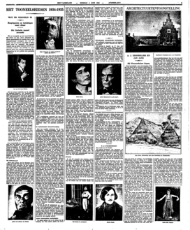 De Ver. Haagsche Spelers hebben o.a. met een mislukt symbolisch spel, ‘Oogst’, en een aardig blijspel, ‘De groote kans’, blijk gegeven van hun presentie. Het Ned.- Indische Tooneel, dat in hoofdzaak een gezelschap is om Cor Ruys, bracht van dezen acteur een zwierigen Mercadet en een dwaze comedie van Verneuil, ‘Belastingontduikers’. De Hagespelers onder leiding van Ed. Verkade kwamen met Liefdelessen van Molière, een pretentieloos en vlot gespeeld divertissement, en het meer aandoenlijke dan belangrijke ‘Sixteen’, waarin mevr. Marie van Westerhoven werd gehuldigd.