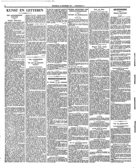 De ondertitel van ‘Tijl Ulenspiegel’, het stuk waarvan de inhoud in het interview met Staf Bruggen in ons blad van eergisteren werd samengevat, is ‘een spel van Vlaamsche geestdrift’. De nadere toelichting in dien ondertitel opgesloten geeft inderdaad wel een juiste karakteristiek van de geaardheid van deze bewerking van het bekende boek van Charles de Coster. De geestdrift maakt er zulk een kapitaal onderdeel van uit, dat men zich den tekst nauwelijks denken kan zonder een stampvolle zaal met Vlamingen als enthousiaste echo en talrijke applausjes, die de opvoering onderbreken. In een Nederlandsch theater is dat publiek uiteraard niet aanwezig, want ook al waren er gisterenavond in het kalme Diligentia een paar open doekjes en langdurige toejuichingen, er was toch een dosis tijd voor noodig, eer de toeschouwers zich aan dit soort tooneel en de acteurs zich aan dit soort publiek hadden gewend. Men kon dan ook constateeren, dat na de pauze de voorstelling meer losheid en natuurlijkheid kreeg dan ervoor, gevolg van een noodzakelijke acclimatiseerings-periode.