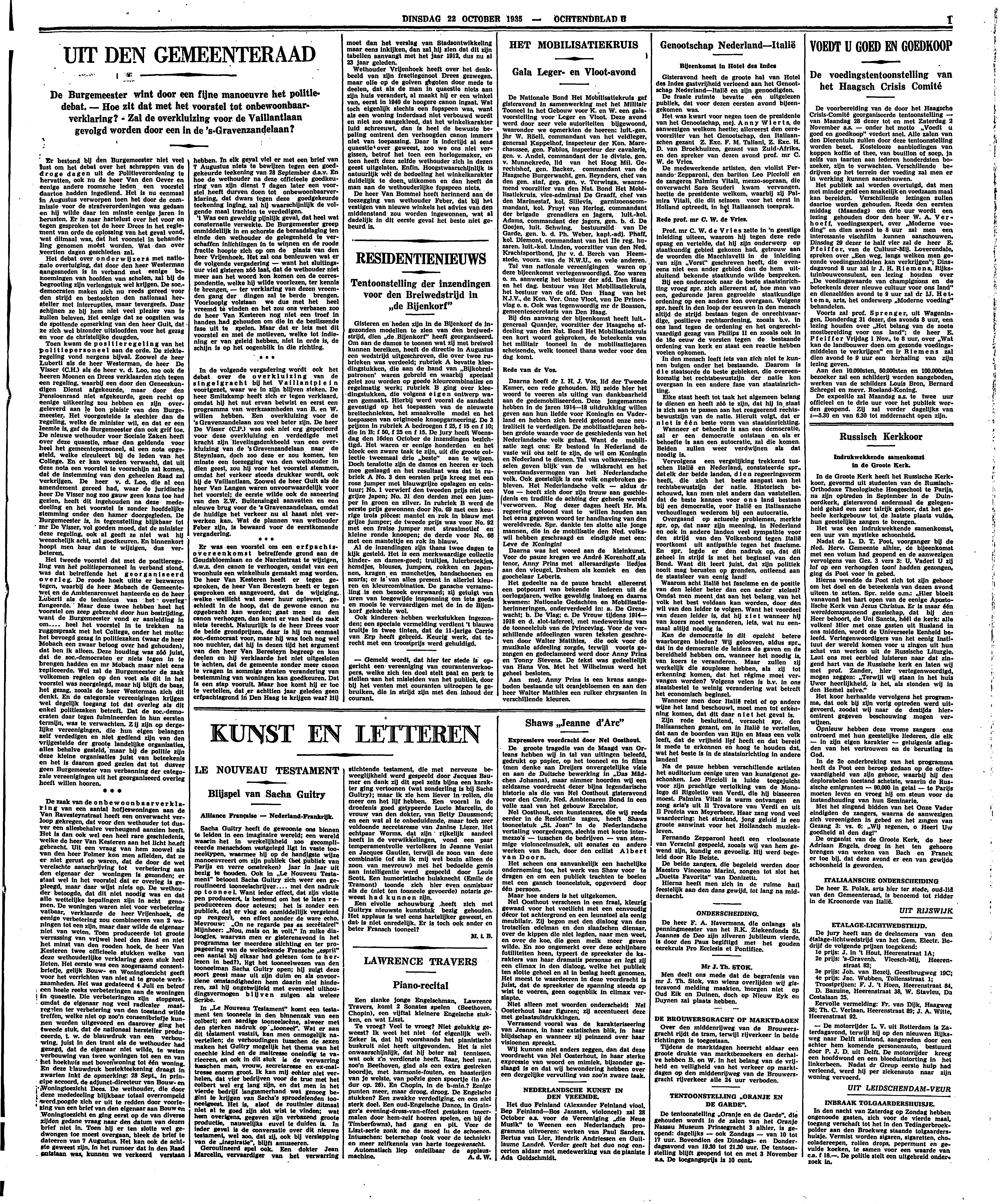 Sacha Guitry heeft de gewoonte ons binnen te leiden in een imaginaire wereld; een wereld waarin het in werkelijkheid zoo gecompliceerde menschdom vastgelegd ligt in vaste tooneeltypen, waarmee hij op de handigste wijze manoeuvreert om zijn publiek (het publiek van Parijs en verre omstreken) jaar in jaar uit bezig te houden. Ook in ‘Le Nouveau Testament’ betoont Sacha Guitry zich weer een geroutineerd tooneelschrijver.... met den nadruk op tooneel. Want ieder effect, dat zijn vlotte pen produceert, is bestemd om het te laten reproduceeren door acteurs; het is zonder een publiek, dat er vlug en onmiddellijk vergetend op reageert, een effect zonder de ware echo. Mevrouw: ‘On ne regarde pas sa secrétaire!’ Mijnheer: ‘Non, mais on la voit.’ In zulke dialoogjes, waarvan men er gisterenavond in het programma ter meerdere stichting en ter propageering van de welbekende Fransche ‘esprit’ een aantal bij elkaar had gelezen (om te herlezen in bed?), ligt het tooneelwezen van den tooneelman Sacha Guitry open; hij zuigt deze soort geest maar uit zijn duim en als onvoorziene omstandigheden hem daarin niet hinderen, zal hij ongetwijfeld met evenveel uithoudingsvermogen blijven zuigen als weleer Scribe.