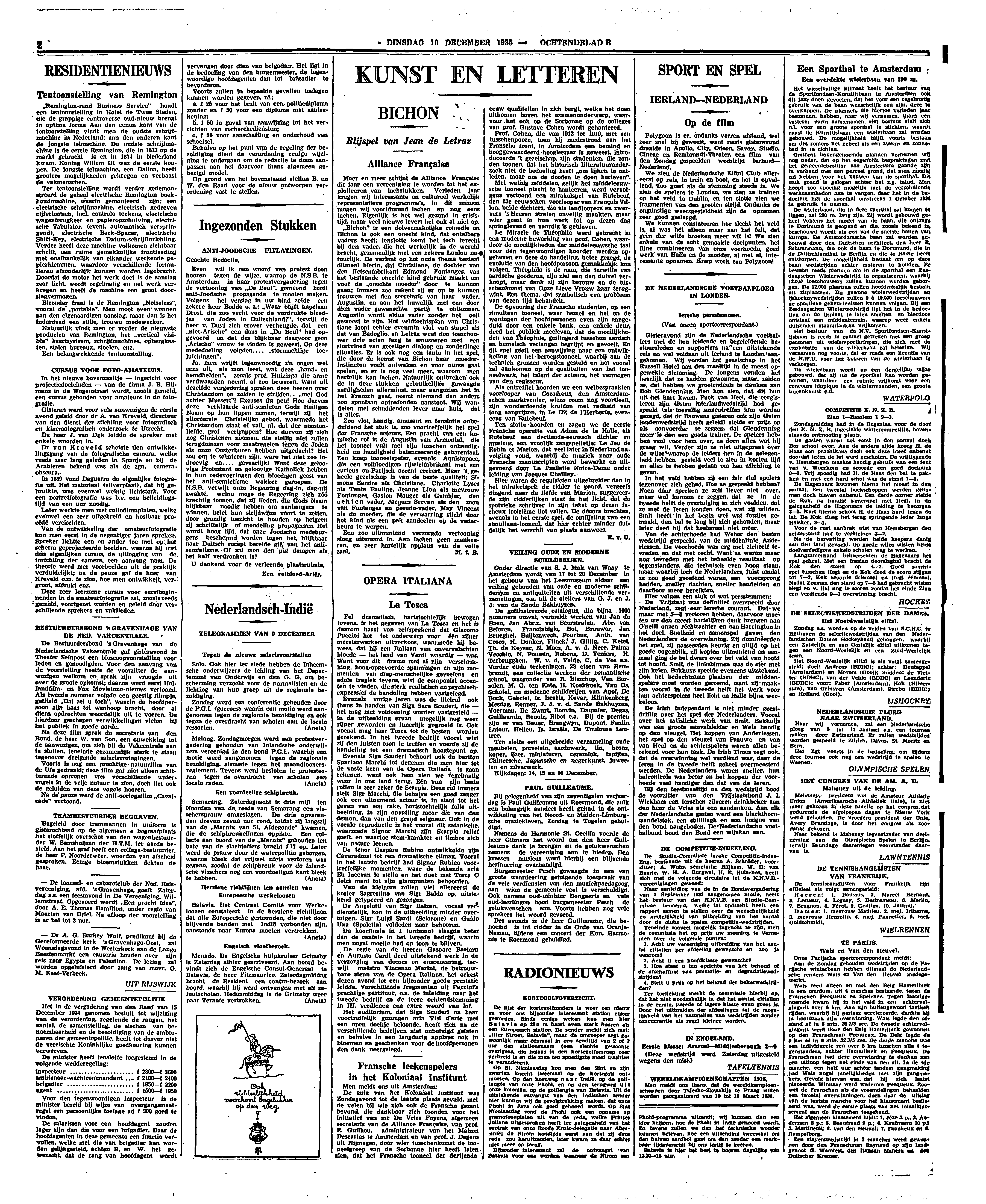 ‘Bichon’ is een dolvermakelijke comedie en Bichon is ook een onecht kind, dat ontelbare vaders heeft; tenslotte komt het toch terecht bij den vader, die het werkelijk in de wereld bracht, gezamenlijk met een zekere Loulou natuurlijk. De variant op het oude thema bestaat ditmaal hierin, dat Christiane, de dochter van den fietsenfabrikant Edmond Fontanges, van het bestaande onechte kind gebruik maakt om voor de ‘onechte moeder’ door te kunnen gaan; immers zoo rekent zij er op te kunnen trouwen met den secretaris van haar vader, Augustin, en aan het huwelijk met een door dien vader gewenschte partij te ontkomen. Augustin wordt aldus vader zonder het ooit geweest te zijn. Het veldtochtsplan van Christiane loopt echter evenmin vlot van stapel als dat van Badoglio, en Letraz weet den toeschouwer drie acten lang te amuseeren met een stortvloed van geestigen dialoog en zonderlinge situaties. Er is ook nog een tante in het spel, die door de komst van Bichon haar moederinstincten voelt ontwaken en voor nurse gaat spelen, en er is nog veel meer, waarom men hartelijk kan lachen. Natuurlijk ontbreken ook de in deze stukken gebruikelijke gewaagde aardigheden allerminst, maar aangezien het in het Fransch gaat, neemt niemand den anders zoo spontaan optredenden aanstoot. Wij wandelen met schuddenden lever naar huis, dat is alles.