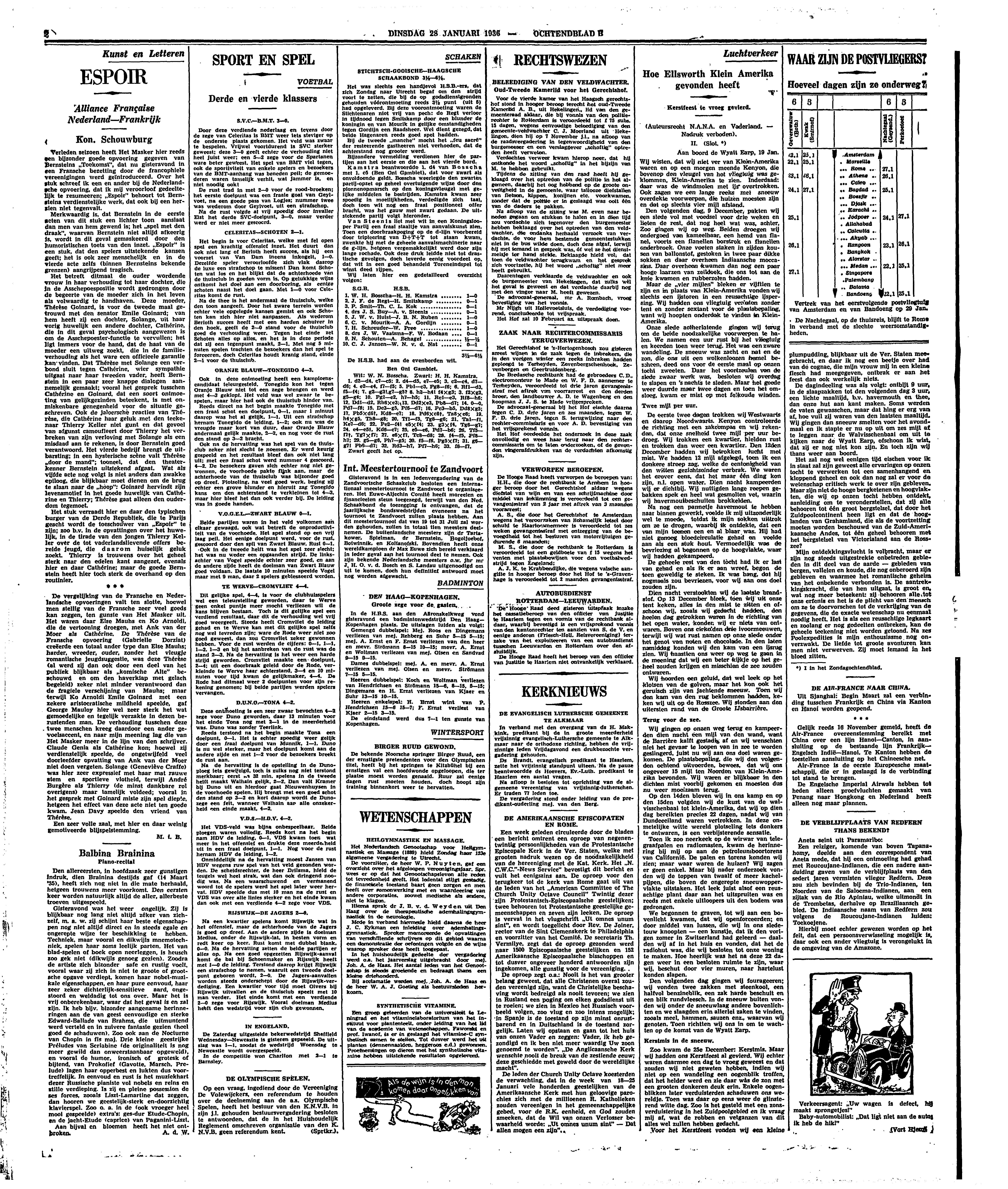 Verleden seizoen heeft Het Masker hier reeds een bijzonder goede opvoering gegeven van Bernsteins ‘Toekomst’, dat nu gisteravond in een Fransche bezetting door de francophiele vereenigingen werd geïntroduceerd. Over het stuk schreef ik een en ander bij de Nederlandsche opvoering, dat ik mij veroorloof gedeeltelijk te resumeeren; ‘Espoir’ behoort tot Bernsteins verdienstelijke werk, dat ook bij een herzien niet tegenvalt.