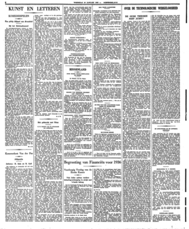 De tooneelgezelschappen schijnen er tegenwoordig op uit te zijn om het publiek in te lichten over de geheimen van het tooneelleven (schijn) en het werkelijke leven in hun onderlinge verhouding. Het Centraal Tooneel kwam met ‘Oude Liefde’, een stuk, waarin het probleem van de twee werelden van het standpunt van den tooneelschrijver werd gezien; den tooneelschrijver, die zijn leven meent te dirigeeren en die toch door het leven zijn rol voorgeschreven krijgt. Nu brengt het Hofstadtooneel de première van een blijspel van Joh. W. Broedelet, dat den tooneelspeler als centrale figuur heeft; den tooneelspeler, die door de ‘groote rol’ aan zijn leven voorbijgaat, terwijl hij meent het langs den weg van tooneeltrucs te beheerschen; den tooneelspeler, die alle gebaren uit zijn hoofd kent of, als hij ze nog niet uit zijn hoofd kent, ze instudeert, tot hij de volmaakte mr Brown is.... d.w.z. de volmaakte leege opperhuid van zichzelf. Hij heeft alles tot gebaar gemaakt, hij maakt zijn medemenschen tot een deel van zijn rol bezetenheid (terwijl zij toch ook gewone menschen blijven, en door die tweeslachtigheid voortdurend zijn wat zij niet zijn), hij is zelf tenslotte de slaaf van den man, dien hij in het stuk moet creëeren en brengt zijn vrouw en zijn collega in elkaars armen, terwijl hij bezig is te lachen om de afgezaagde cliché's, waarin de.... werkelijkheid zich af.... speelt. Heeft hij nu de werkelijkheid overwonnen, of overwon de werkelijkheid hem?