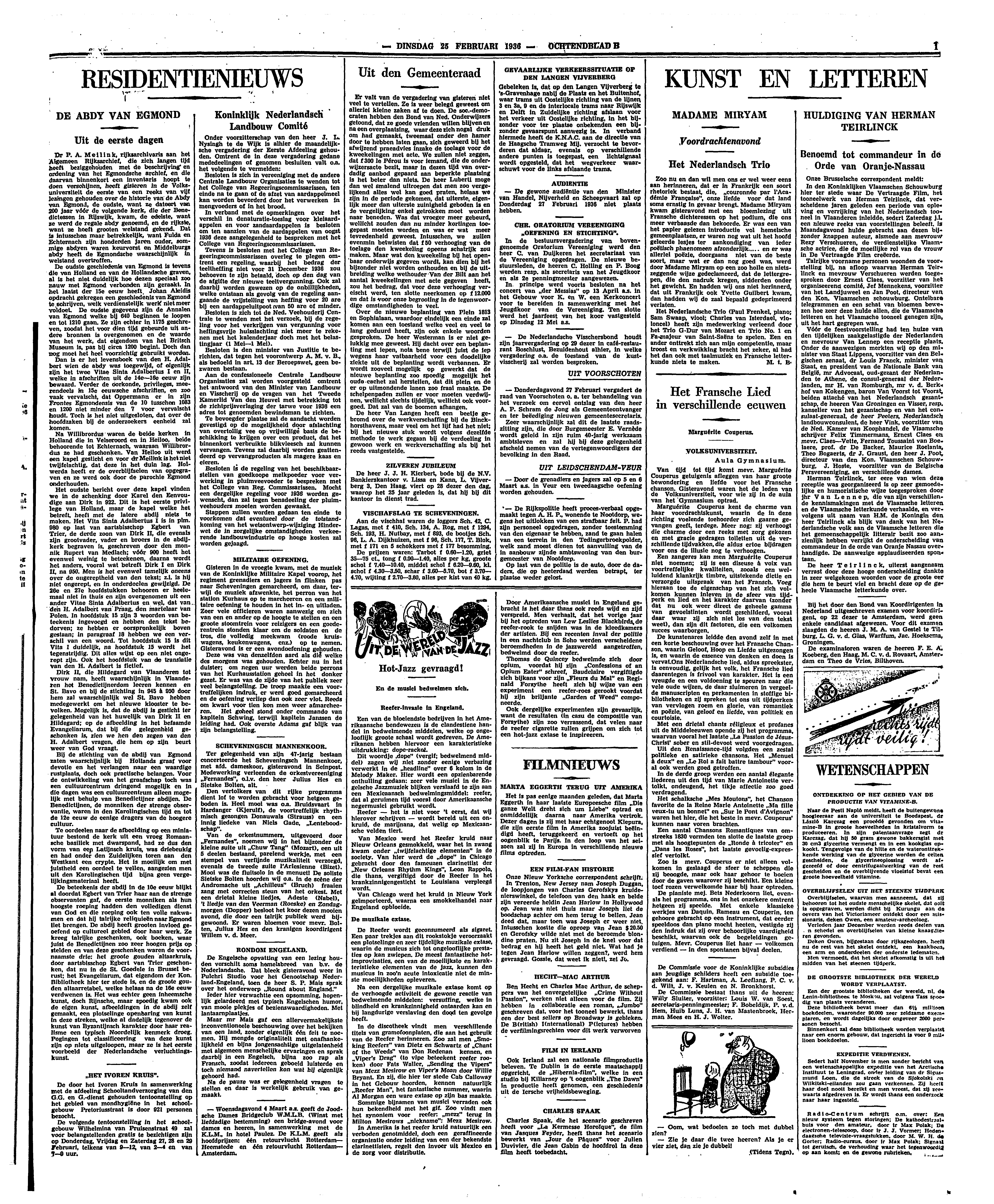 Het Nederlandsche Trio (Paul Frenkel, piano; Sam Swaap, viool; Charles van Isterdael, violoncel) heeft zijn medewerking verleend door het Trio G-Dur van Mozart en Trio No. 1 en Fa-majeur van Saint-Saëns te spelen. Een en ander onttrekt zich aan mijn competentie, maar troost en verkwikking bracht het zeker, al had het dan ook met taalmuziek en Fransche letterkunde niets te maken.