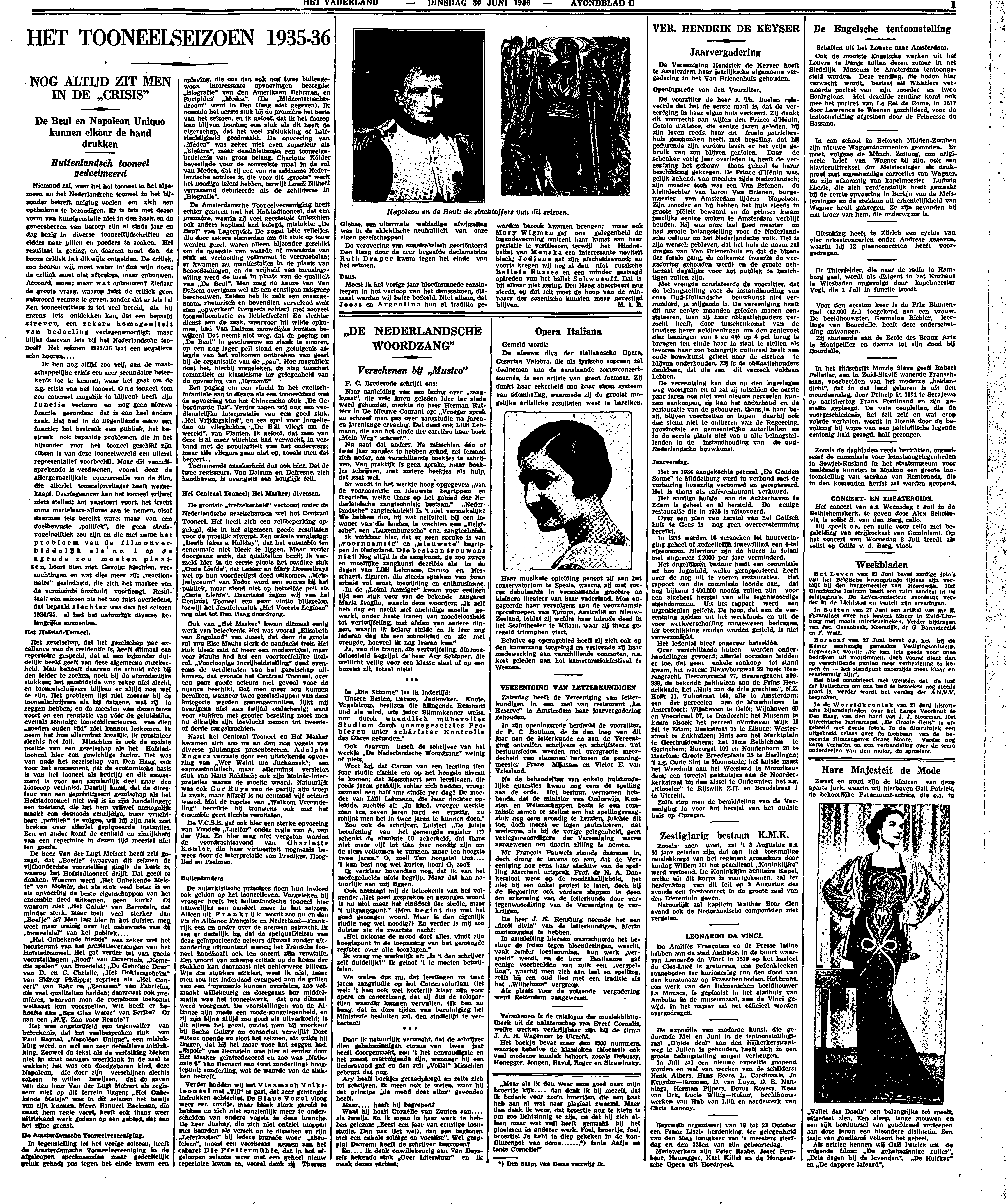 Het was ongetwijfeld een tegenvaller van beteekenis, dat het veelbesproken stuk van Paul Raynal, ‘Napoléon Unique’, een mislukking werd, en wel een zeer definitieve mislukking. Zoowel de tekst als de vertolking bleken niet in staat eenigen weerklank in de zaal te wekken; het was een doodgeboren kind, deze Napoleon, die door zijn verschijnen slechts scheen te willen bewijzen, dat de gaven van den heer Van der Lugt Melsert als regisseur niet op dit terrein liggen; ‘Het Onbekende Meisje’ was in dit seizoen het bewijs van zijn kunnen. Mevr. Ranucci Beckman, die naast hem regie voert, heeft ook thans weer uitstekend werk gedaan op een gebied, dat aan het zijne grenst.