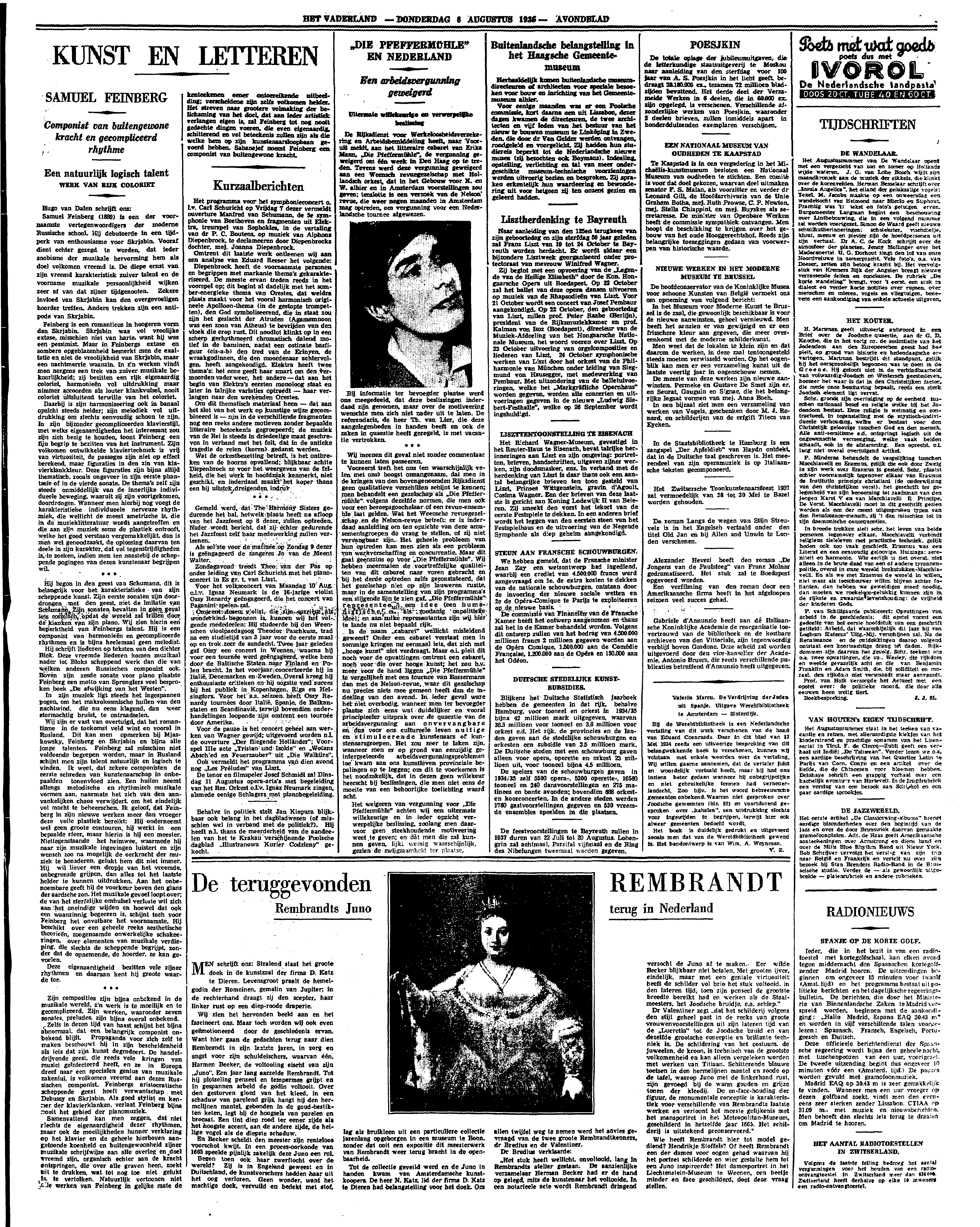 De Rijksdienst voor Werkeloosheidsverzekering en Arbeidsbemiddeling heeft, naar Vooruit meldt, aan het litteraire cabaret van Erika Mann, ‘Die Pfeffermühle’, de vergunning geweigerd om één week in Den Haag op te treden. Tevens werd deze vergunning geweigerd aan een Weensch revuegezelschap met Hollandsch orkest, dat in het Gebouw voor K. en W. alhier en in Amsterdam voorstellingen zou geven; tenslotte is een verzoek van de Nelson' revue, die weer negen maanden in Amsterdam mag optreden, om vergunning voor een Nederlandsche tournee afgewezen.