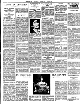 Is de naam ‘cabaret’ wellicht misleidend geweest? Onder een cabaret verstaat men in sommige kringen nu eenmaal iets, dat zich met ‘hooge kunst’ niet verdraagt. Maar o.i. pleit dit noch voor de opvattingen omtrent een cabaret, noch voor die over hooge kunst; het zou b.v. meer voor de hand liggen ‘Die Pfeffermühle’ te vergelijken met een tournee van Bassermann dan met de Nelson-revue, waar dit gezelschap nu precies niets mee gemeen heeft dan de indeeling van den avond. In ieder geval ware het niet overbodig, wanneer men ter bevoegder plaatse zich eens wat duidelijker en vooral principieeler uitsprak over de quaestie van de arbeidsvergunning aan onvervangbare en dus voor ons cultureele leven nuttige en stimuleerende kunstenaars of kunstenaarsgroepen. Het zou zeer te laken zijn, wanneer men er op grond van eenzijdig geinterpreteerde arbeidsvergunningsproblemen toe kwam aan ons kunstleven provinciale bepalingen op te leggen; om dit te voorkomen is het noodzakelijk, dat in dezen geen willekeur heerscht bij beslissingen, die men niet eens de moeite van een behoorlijke toelichting waard acht.