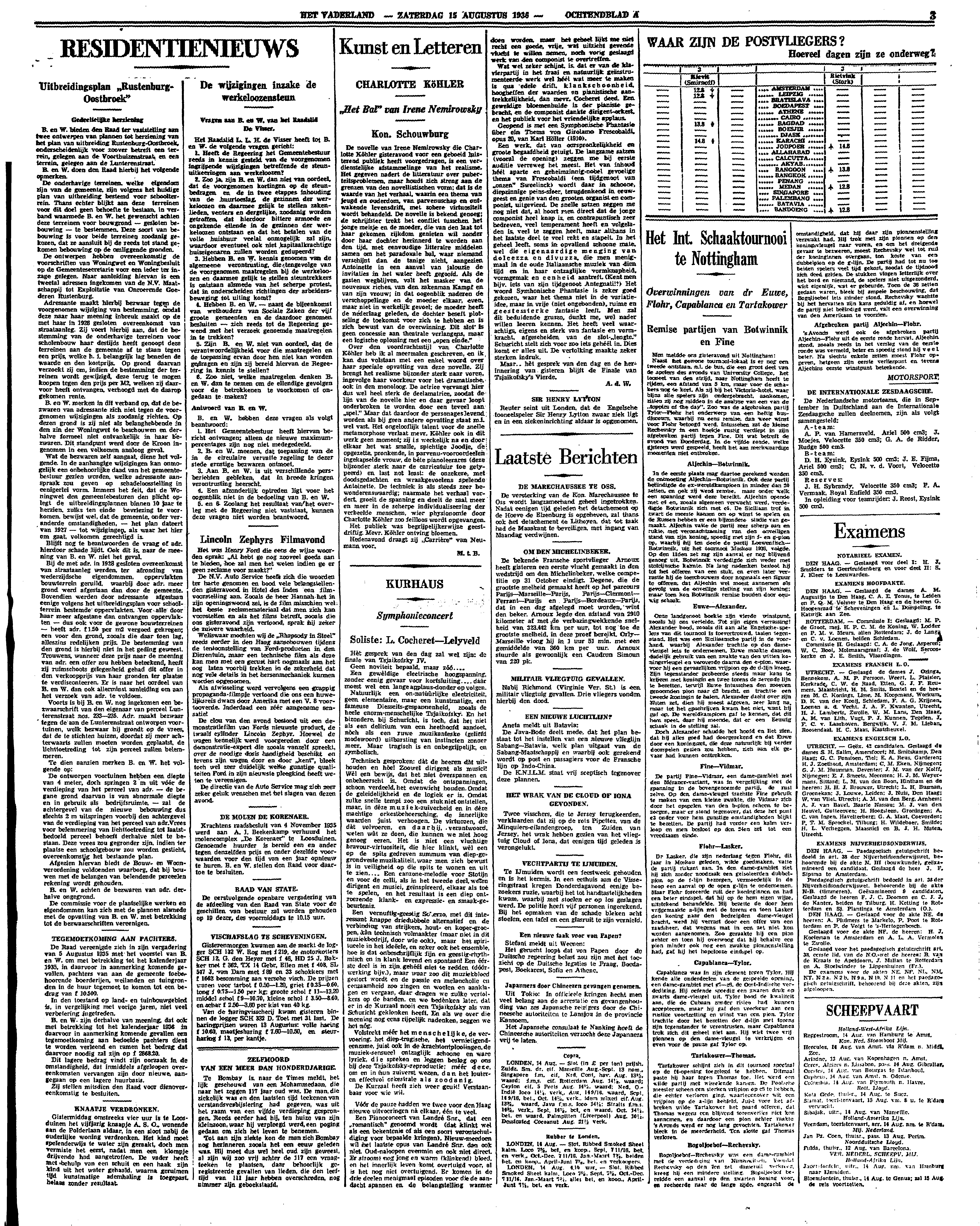 De novelle van Irene Nemirowsky die Charlotte Köhler gisteravond voor een geboeid luisterend publiek heeft voorgedragen, is een verdienstelijke afstammelinge van het realisme. Het gegeven nadert de litteratuur over puberteitsproblemen, maar houdt zich streng aan de grenzen van den novellistischen vorm; dat is de waarde van het verhaal, waarin een thema van jeugd en ouderdom, van parvenuschap en ontwakende levensdrift, met sobere virtuositeit wordt behandeld. De novelle is bekend genoeg; de schrijfster trekt het conflict tusschen het jonge meisje en de moeder, die van den laat tot haar gekomen rijkdom genieten wil zonder door haar dochter herinnerd te worden aan den tijd, met eenvoudige litteraire middelen samen om het paradoxale bal, waar niemand verschijnt dan de tanige nicht, aangezien Antoinette in een aanval van jalouzie de invitaties in het water heeft gegooid. Als de gasten wegblijven, valt het masker van de nouveaux riches, van den zakenman Kampt en van zijn vrouw; in dat oogenblik naderen de verschoppelinge en de moeder elkaar, even, maar niet in werkelijk gevoel; de moeder heeft de nederlaag geleden, de dochter beseft plotseling de toekomst voor zich te hebben en is zich bewust van de overwinning. Dit slot is geen concessie aan theatrale verlangens, maar een logische oplossing met een ‘open einde.’