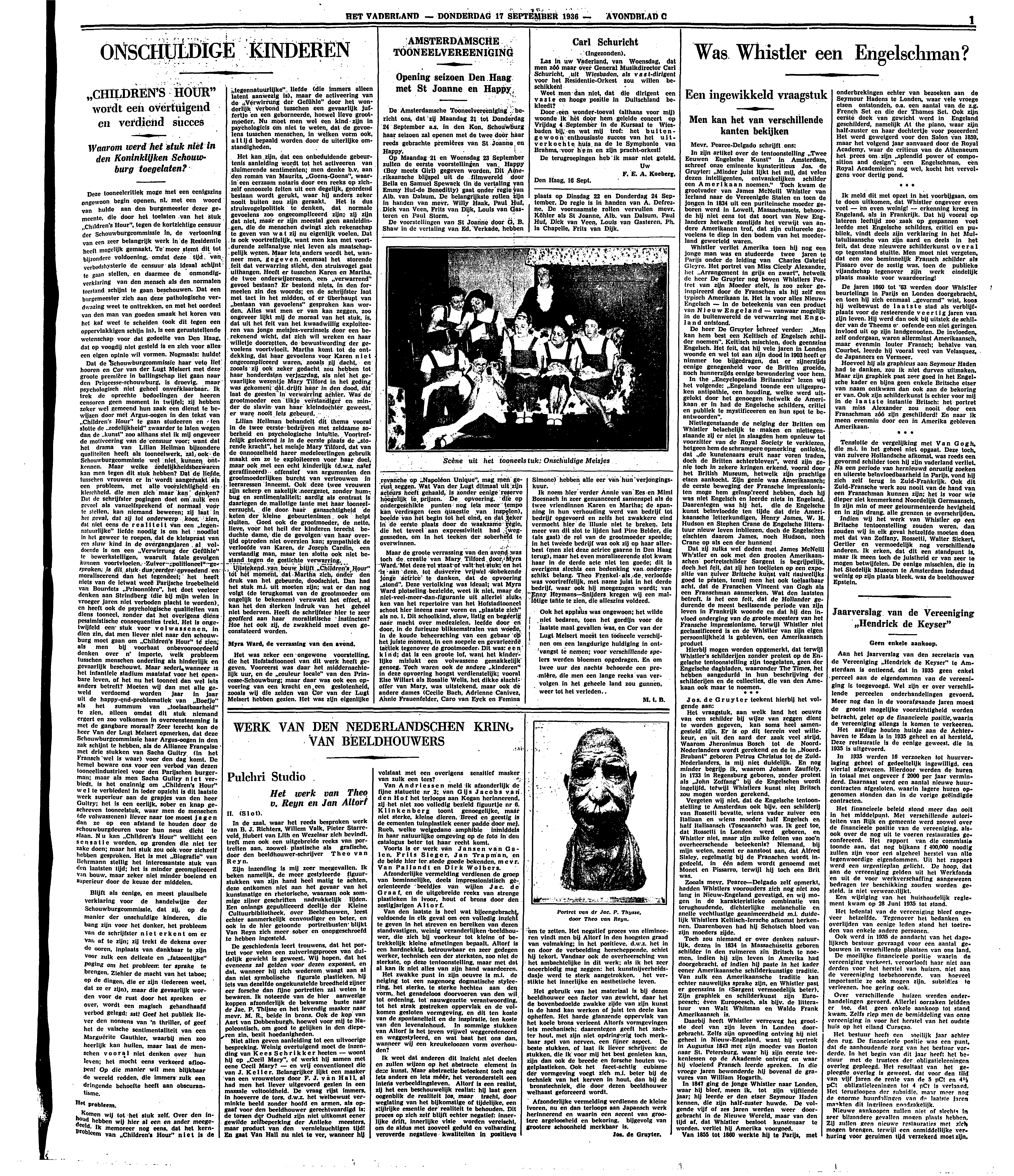 Deze toneelcritiek moge met een eenigszins ongewoon begin openen, nl. met een woord van hulde aan den burgemeester dezer gemeente, die door het toelaten van het stuk ‘Children's Hour’, tegen de kortzichtige censuur der Schouwburgcommissie in, de vertooning van een zeer belangrijk werk in de Residentie heeft mogelijk gemaakt. Te meer stemt dit tot bijzondere voldoening, omdat deze tijd van verbodshysterie de censuur als ideaal schijnt te gaan stellen, en daarmee de onmondigverklaring van den mensch als den normalen toestand schijnt te gaan beschouwen. Dat een burgemeester zich aan deze pathologische verdwazing weet te onttrekken, en met het oordeel van den man van goeden smaak het koren van het kaf weet te scheiden (ook dit tegen een oppervlakkigen schijn in), is een geruststellende wetenschap voor dat gedeelte van Den Haag, dat op voogdij niet gesteld is en zich voor alles een eigen opinie wil vormen. Nogmaals: hulde!