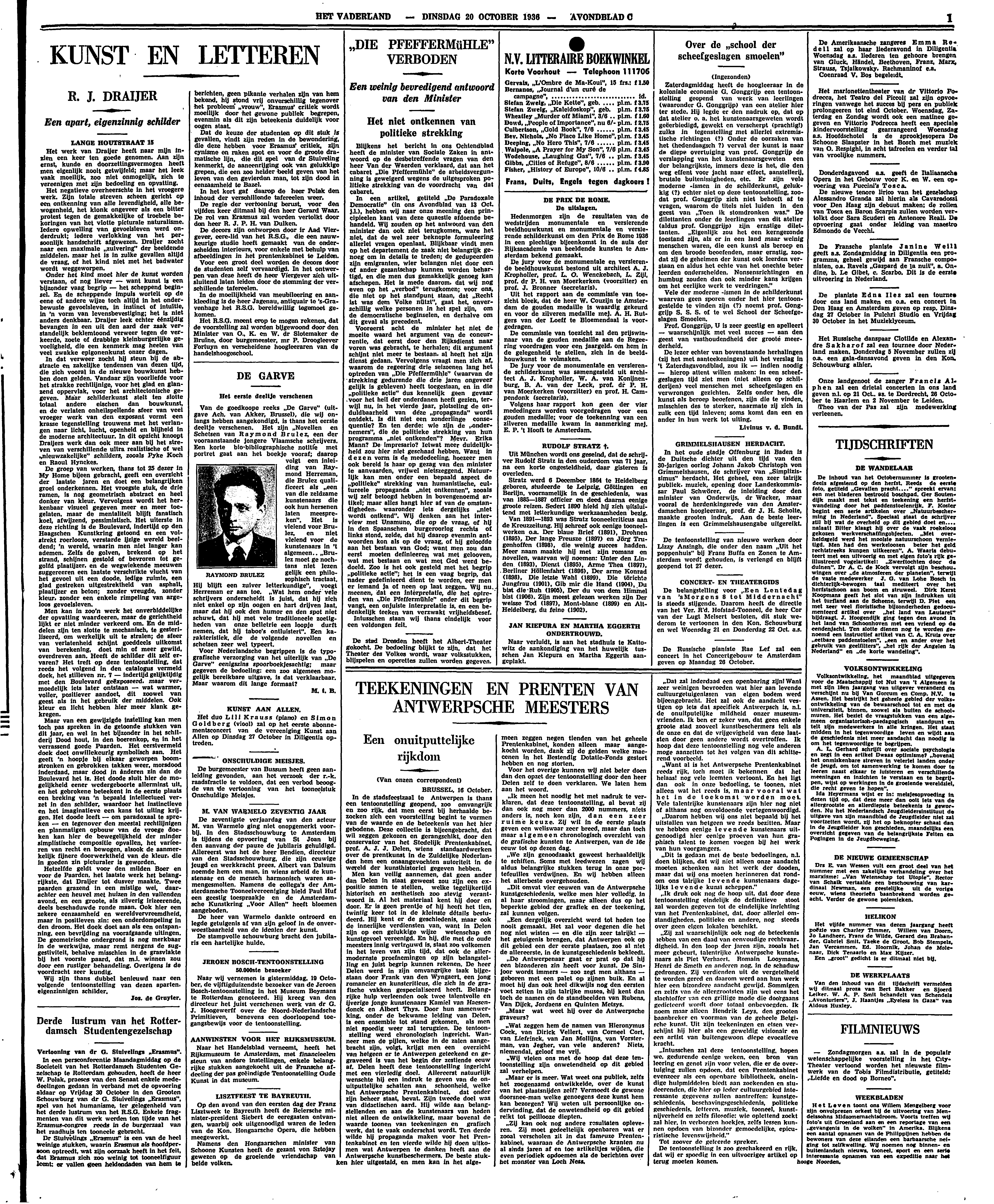 In een artikel, getiteld ‘De Paradoxale Democratie’ (in ons Avondblad van 13 Oct. j.l.), hebben wij naar onze meening den principieelen kant van deze quaestie afdoende behandeld. Wij zouden op het antwoord van den minister dan ook niet terugkomen, ware het niet, dat de wel zeer beknopte formuleering allerlei vragen openlaat. Blijkbaar vindt men op het departement de zaak niet belangrijk genoeg om in details te treden; de gedupeerden zijn emigranten, wier belangen niet door een of ander gezantschap kunnen worden behartigd, en die men dus gemakkelijk genoeg kan afschepen. Het is mede daarom, dat wij nog even op het ‘verbod’ terugkomen; voor ons, die niet op het standpunt staan, dat ‘Recht ist was dem Volke nützt’, gaat het, onverschillig welke personen in het spel zijn, om de democratische beginselen, en derhalve om dit geval als precedent.