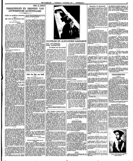 Clotilde en Alexander Sakharof zijn zeer geneigd over de geheimen van hun métier met den interviewer te spreken. Zij hullen zich niet in een mysterieus waas, maar houden blijkbaar van een gesprek over hun ‘vocabulaire’, dat in laatste instantie natuurlijk niet onder woorden is te brengen, omdat de beweging bij de beoordeeling van den dans den doorslag geeft. Een uitwisseling van meeningen over danskunst blijft daarom altijd iets voorloopigs, maar daarom kan het toch wel degelijk zijn nut hebben ook de theoretische overwegingen van dansers te noteeren. De heer en mevrouw Sakharof vullen elkaar in het gesprek uitstekend aan; ook in de theorie zijn zij.. partners, die ieder voor zich een streven naar evocatieve kunst belichamen; belichamen ditmaal in den letterlijksten zin, dien het woord maar kan hebben.