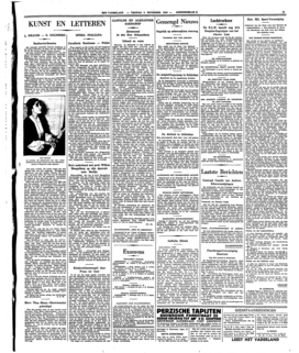 Wanneer de Sakharofs er den nadruk op leggen, dat hun kunst een inhoud heeft (zie het avondblad van eergisteren), en dat zij zich inspireeren op litteratuur, beeldende kunst en muziek, dan getuigt zulk een uitlating eenerzijds van zelfkennis, maar anderzijds van een merkwaardig (en zeer vaak voorkomend) misverstand. Immers: de dansen van Clotilde en Alexander Sakharof zijn voor alles aanvaardbaar, wanneer zij dans zijn, en niets, of vrijwel niets anders; hun zwakke kant is juist de inhoud, dien zij inderdaad zoeken te benaderen in sommige van hun dansen, maar gelukkig lang niet altijd. ‘Inhoud’, is voor den danser een gevaarlijk woord, omdat zijn kunst onherroepelijk gebonden is aan een beperkt aantal suggesties van ‘inhoudelijken’ aard; hij heeft zijn lichaam, heeft zijn bewegingen, heeft allerlei middelen om die bewegingen te accentueeren (costuum, decor, belichting), maar aangezien hij toch altijd weer op lichaam en beweging als hoofdzaak is aangewezen, zal zijn ‘inhoud’ noodzakelijkerwijze beperkt blijven tot symbolische aanduidingen van gevoelens, stemmingen, etc. Zoodra de dans bewust philosophisch of diepzinnig wordt, ontstaat er een hybridisch product.