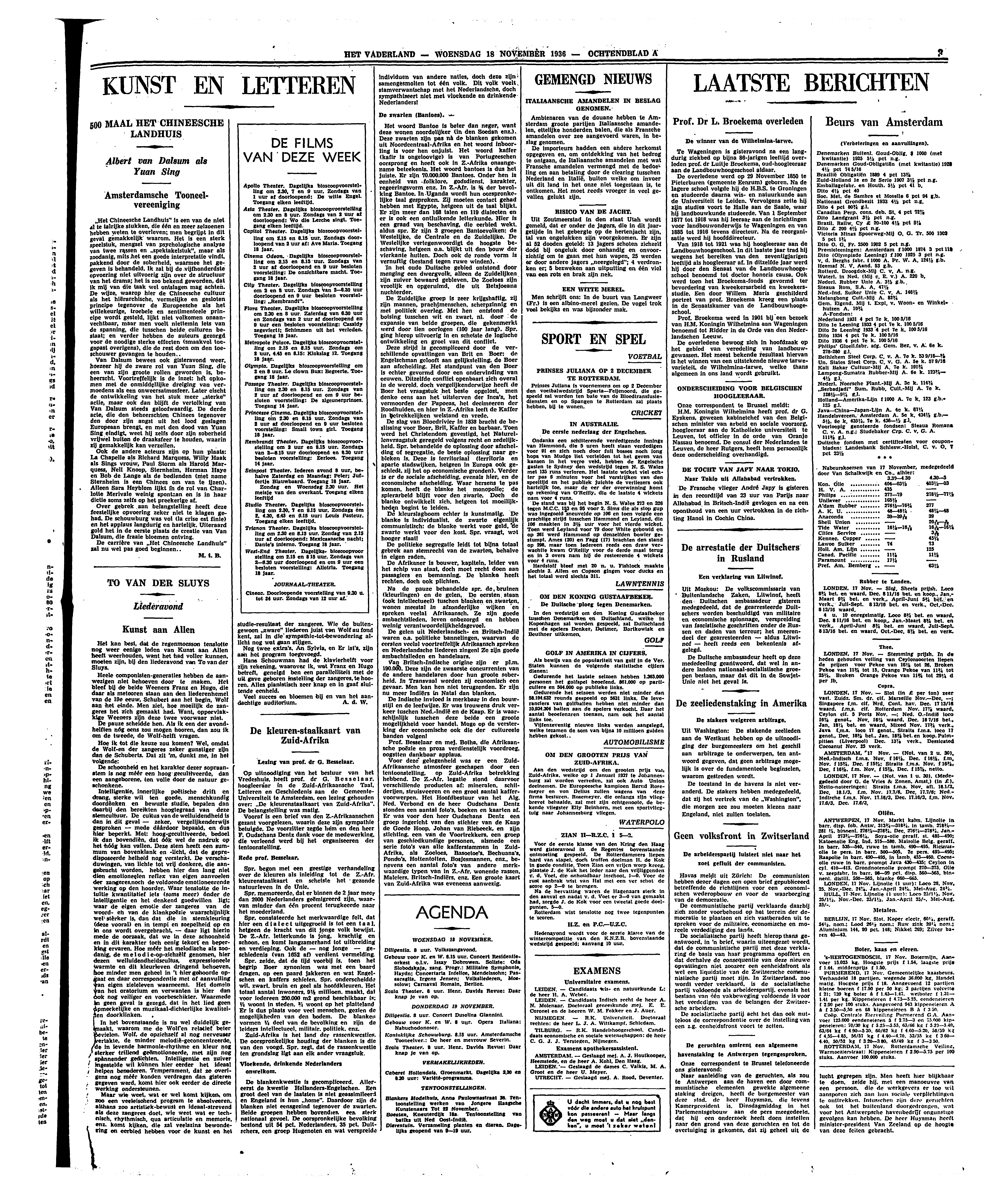 Van Dalsum bewees ook gisteravond weer, hoezeer hij de zware rol van Yuan Sing, die een van zijn groote rollen geworden is, beheerscht. Voortreffelijk is de inzet: het opkomen met de onmiddellijke dreiging van vermoedens als een onweersatmosfeer. Later eischt de ontwikkeling van het stuk meer ‘sterke’ actie, maar ook dan blijft de vertolking van Van Dalsum steeds geloofwaardig. De derde acte, die den beheerschten Chinees tegenover den door zijn angst uit het lood geslagen Europeaan brengt, en met den dood van Yuan Sing eindigt, weet hij zelfs door zijn soberheid vrijwel buiten de draaksfeer te houden, waarin zij gemakkelijk kan verzeilen.