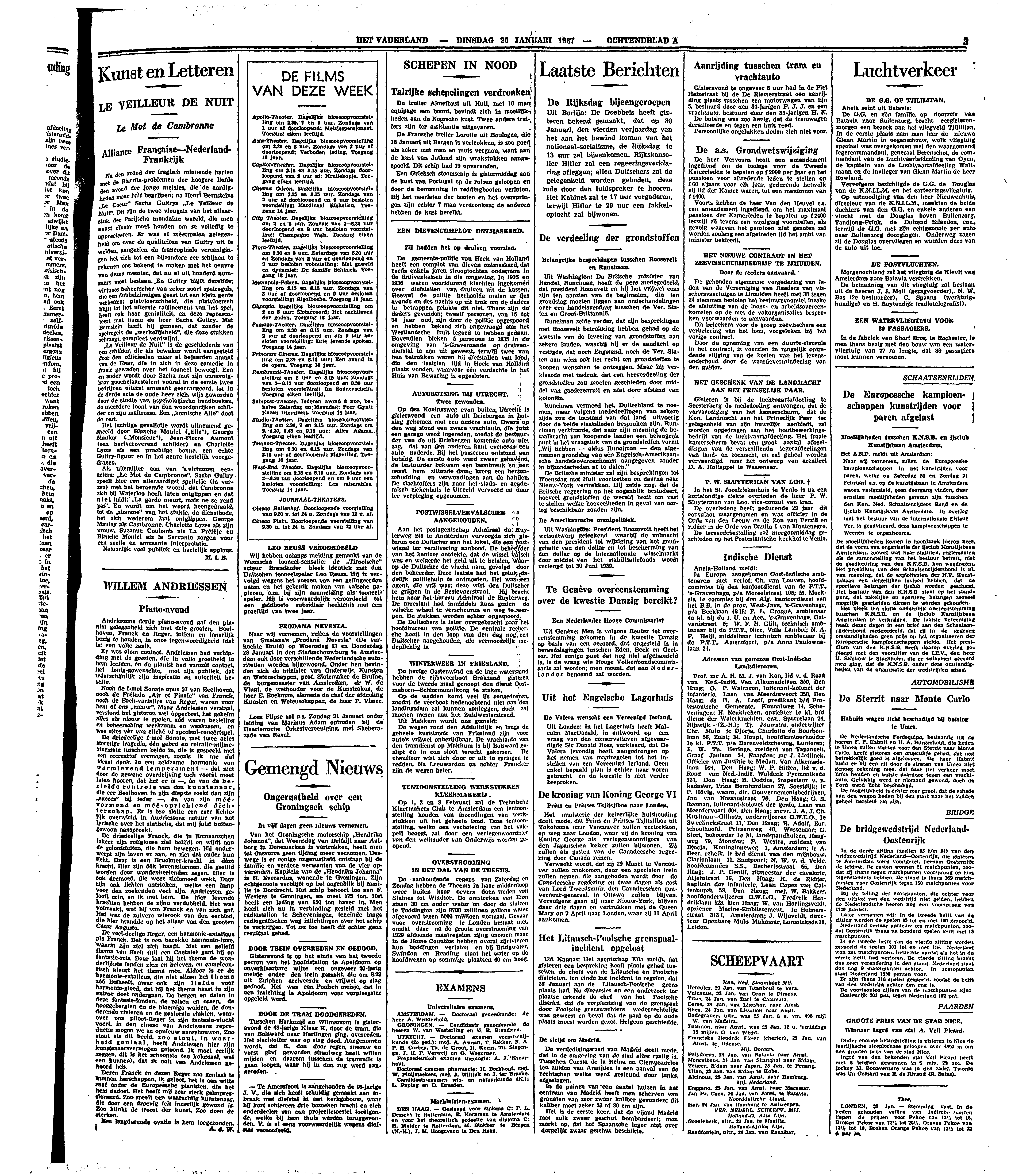 Na den avond der tragisch minnende harten met de Biarritz-problemen der hoogere liefde den avond der jonge meisjes, die de aardigheden maar half begrijpen; na Henri Bernsteins ‘Le Coeur’ Sacha Guitrys ‘Le Veilleur de Nuit’. Dit zijn de twee vleugels van het altaarstuk der Parijsche mondaine wereld, die men naast elkaar moet houden om ze volledig te apprecieeren. Er was al meermalen gelegenheid om over de qualiteiten van Guitry uit te weiden, aangezien de francophiele vereenigingen het zich tot een bijzondere eer schijnen te rekenen ons bekend te maken met het oeuvre van dezen meester, dat nu al uit honderd nummers moet bestaan. En Guitry blijft dezelfde: virtuoos beheerscher van zeker soort spelregels, die een dubbelzinnigen geest tot een klein genie verheffen; platvloerschheid, die platvloersch blijft tot het uiterste raffinement van het spel, heeft ook haar genialiteit, en deze representeert met name de heer Sacha Guitry. Met Bernstein heeft hij gemeen, dat zonder de spelregels de ‘werkelijkheid’, die deze stukken schraagt, compleet verdwijnt.