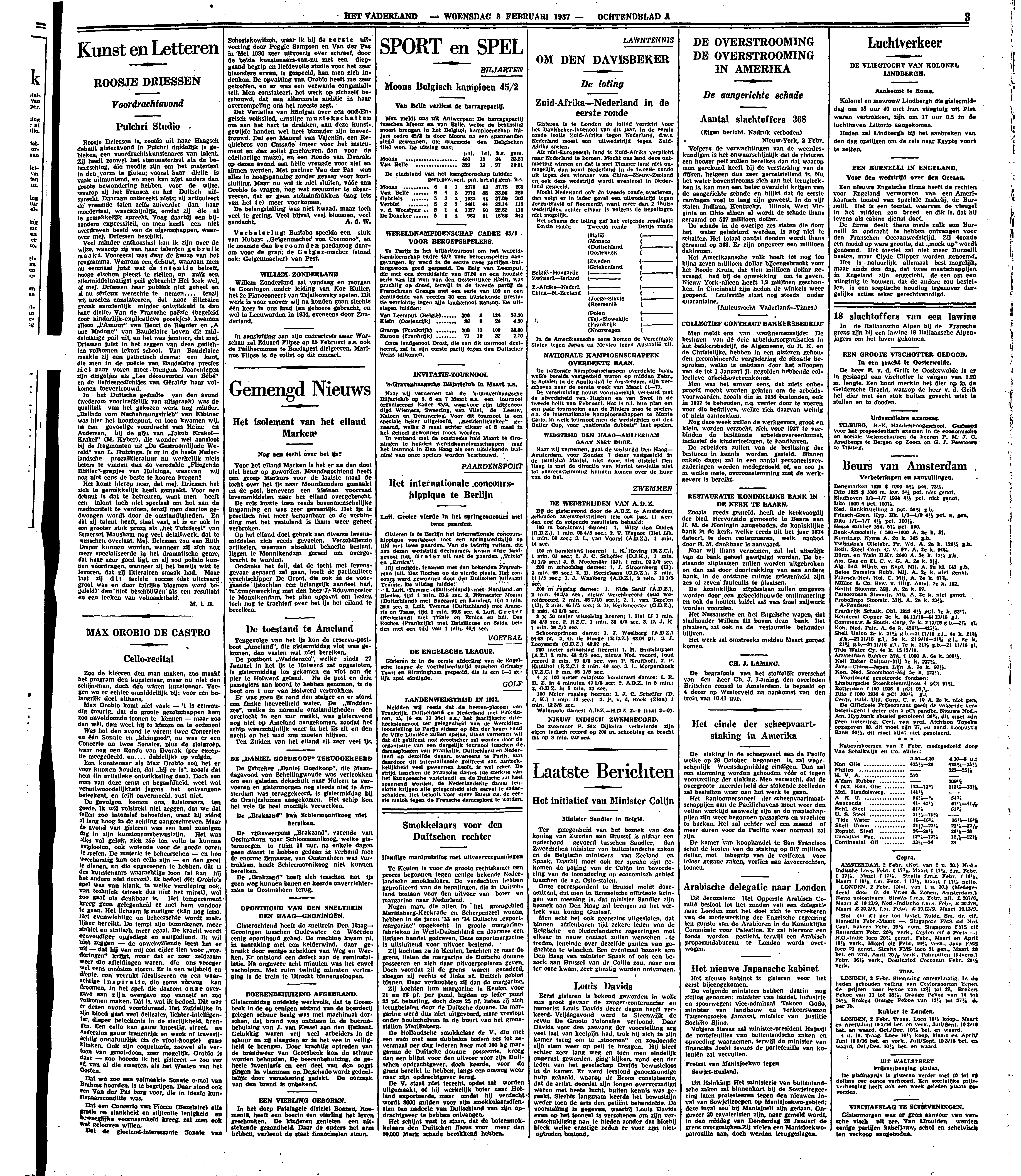 Het komt hierop neer, dat mej. Driessen het zich te gemakkelijk heeft gemaakt. Voor een debuut is dat te betreuren, want men heeft een talent toch niet speciaal om het aan de mediocriteit te verdoen, tenzij men daartoe gedwongen wordt door de omstandigheden. En dàt zij talent heeft, staat vast, al is er ook in een grooter stuk proza als ‘het Tuinfeest’ van Somerset Maugham nog veel detailwerk, dat te wenschen overlaat. Mej. Driessen zou een Ruth Draper kunnen worden, wanneer zij zich nog meer specialiseerde in het dramatische genre, dat haar zeer goed ligt, en zij zou poëzie kunnen voordragen, wanneer zij het bewijs wist te leveren, dat zij litterairen smaak had. Maar laat zij dit faciele succes (dat uiteraard groot was en door talrijke bloemen werd begeleid) dan niet beschouwen als een resultaat en een teeken van volmaaktheid.