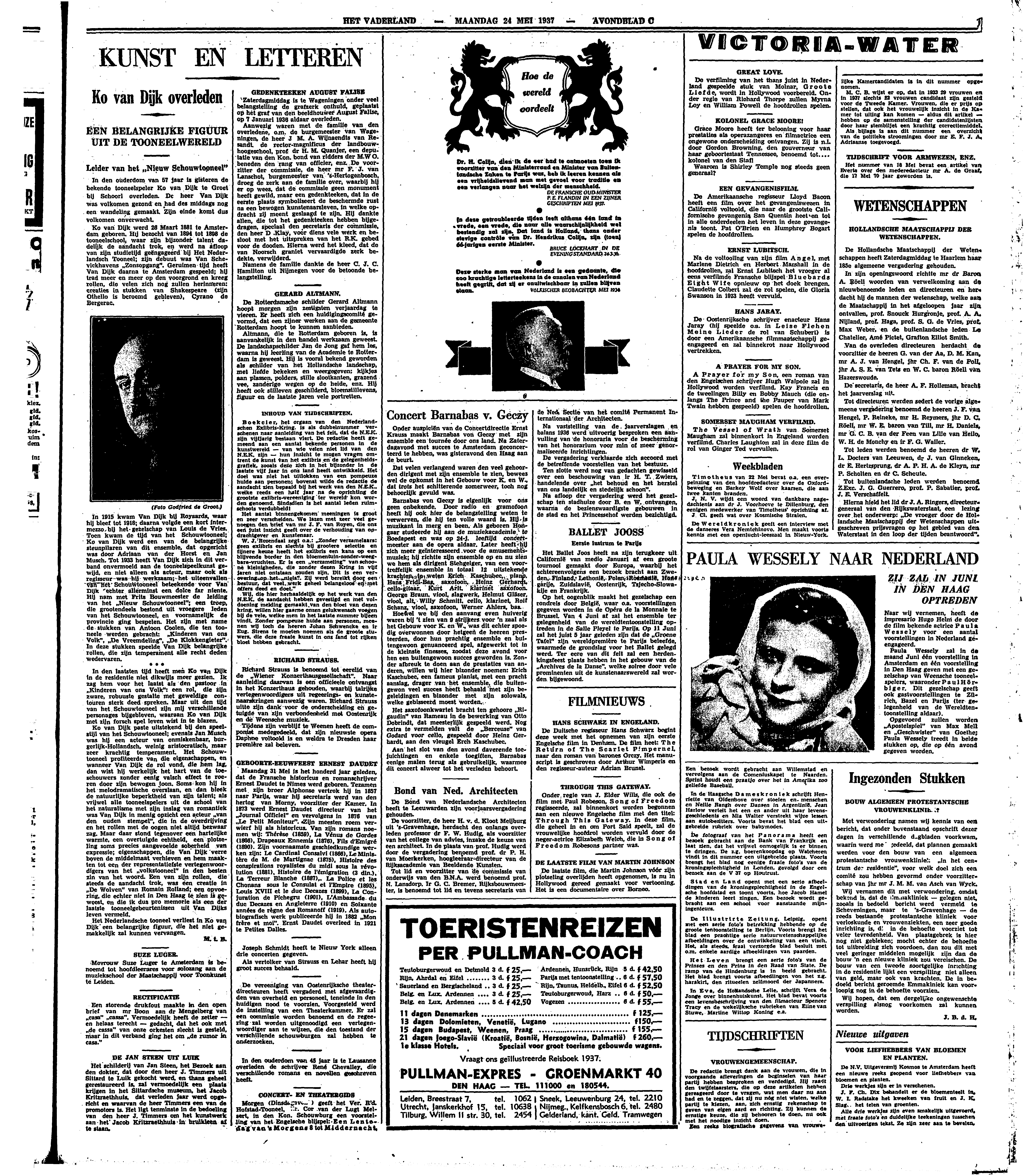 In den ouderdom van 57 jaar is gisteren de bekende tooneelspeler Ko van Dijk te Groet bij Schoorl overleden. De heer Van Dijk was volkomen gezond en had des middags nog een wandeling gemaakt. Zijn einde komt dus volkomen onverwacht.
