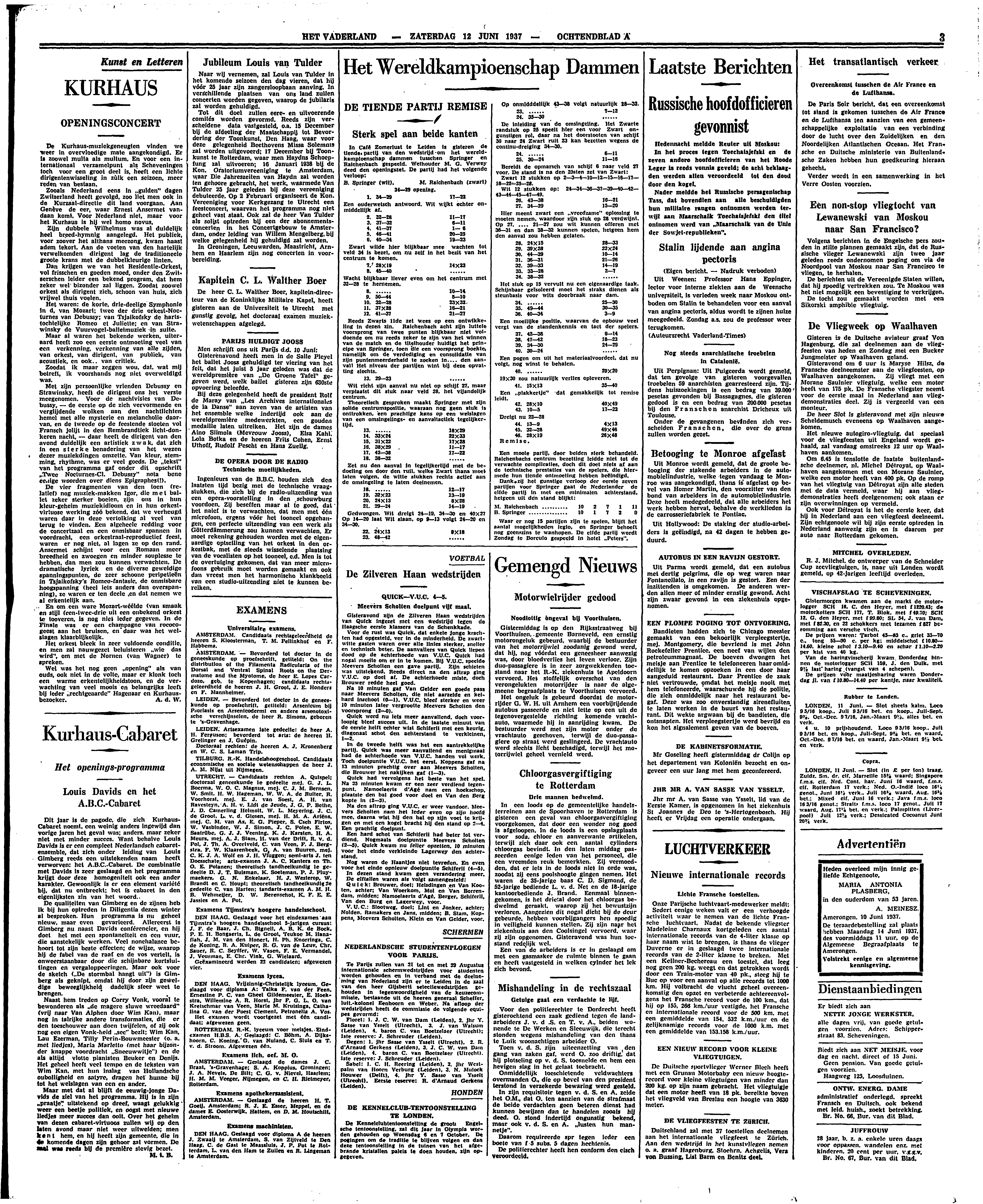 Maar met dat al blijft de eeuwig-jonge Davids de ziel van het programma. Hij is in zijn ‘praatje’ uitstekend op dreef, waagt gelukkig weer een beetje politiek, en oogst met nieuwe liedjes meer succes dan ooit. Over het geheim van dezen cabaret-vituoos zullen wij op den laten avond maar niet weer uitweiden; men kent hem, en hij heeft zijn gemeente, die in de komende dagen zijn gehoor zal vormen. De zaal was reeds bij de première stevig bezet.
