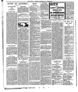 Het Atlas-Hotel in Marokko, waarheen de fantasie van Salacrou ons verplaatst, blijkt een logement van het ouderwetsche recept: humor en tragiek door elkaar. Blijkbaar is de goede draak van weleer niet overleden zonder kroost achter te laten; ‘Atlas-Hotel’ is ten minste in ieder opzicht verwant aan de sterke effecten, waarmee in de vorige eeuw dikwijls een lach uit tranen en tranen uit een lach werden geperst, zoodat men zakdoeken te kort kwam. De eigenaar van dit hotel is weliswaar een utopist, waarover een stuk van geheel ander gehalte te maken ware geweest; een man met luchtkasteelen, die zichzelf een zakenman waant, zou een geweldige figuur kunnen zijn.... in een stuk. dat Salacrou echter niet heeft geschreven. Hij heeft zich bepaald tot feuilleton-romantiek. Auguste, de utopistische hotelbouwer, en zijn vrouw Augustine komen in aanraking met den eersten man van Augustine, die eens dichter was en nu zakenman is geworden; werkelijk zakenman. Hij wil Augustine terug hebben en beraamt een perfide plan om het hotel te koopen, ten einde op die manier eigenlijk Augustine van haar echtgenoot af te koopen. Onder donder en bliksem mislukt dit snoode voornemen; een militair treedt naar voren en zegt iets over den sterrenhemel; daarmee zijn wij het einde genaderd; Auguste en Augustine blijven geruïneerd, maar met hun ongeschonden idealen achter. ‘Atlas-Hotel’ is een stuk vol melodramatische scèenes en humoristische tegeneffecten, uiterst geschikt om het feuilleton in tooneelvorm tot de menschen te brengen.