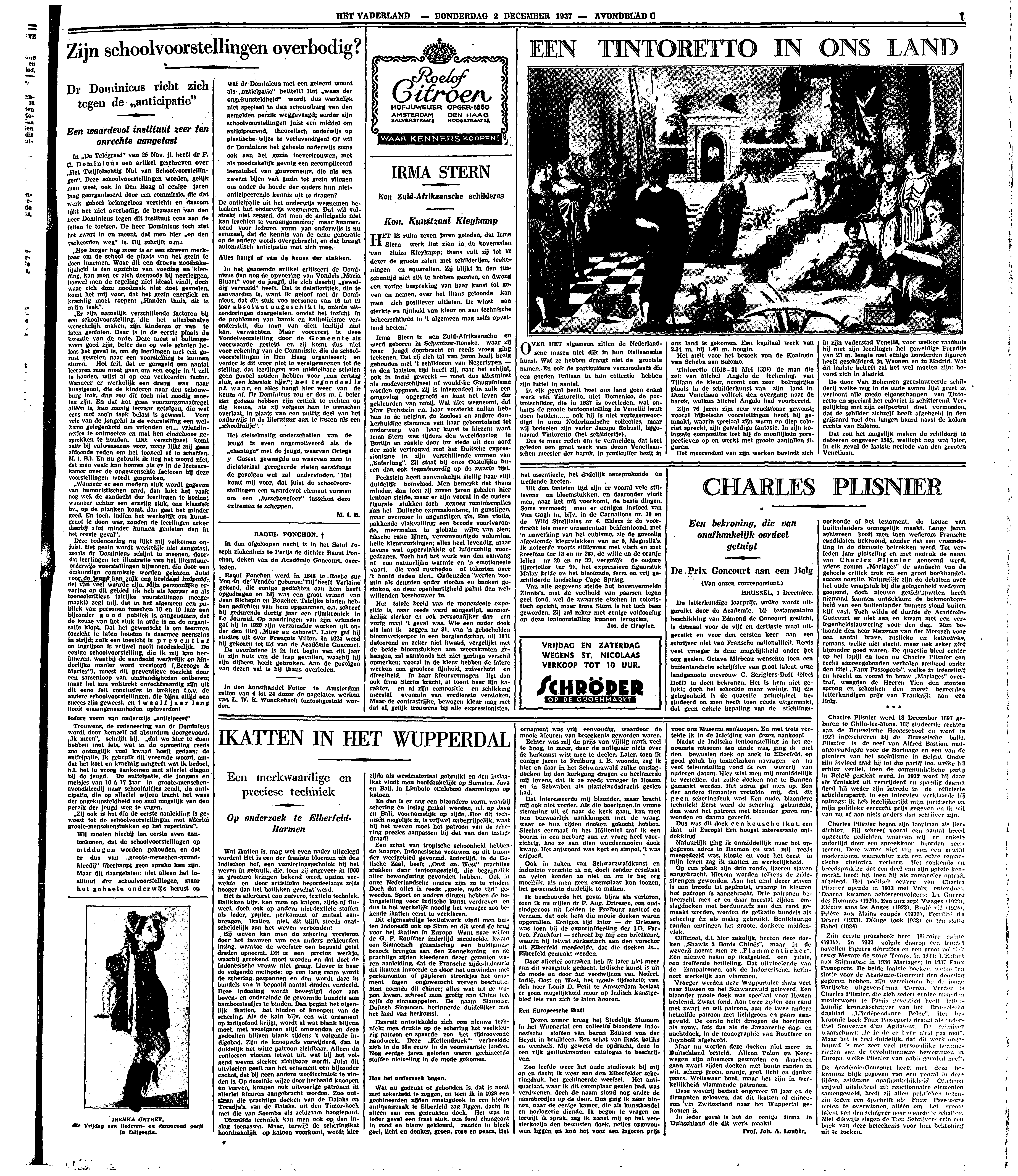 Wij moeten hierbij ten eerste even aanteekenen, dat de schoolvoorstellingen op middagen worden gehouden, en dat er dus van ‘groote-menschen-avondkleedij’ überhaupt geen sprake kan zijn. Maar dit daargelaten: niet alleen het instituut der schoolvoorstellingen, maar het geheele onderwijs berust op wat dr Dominicus met een geleerd woord als ‘anticipatie’ betitelt! Het ‘waas der ongekunsteldheid’ wordt dus werkelijk niet speciaal in den schouwburg van den gemelden perzik weggevaagd; eerder zijn schoolvoorstellingen juist een middel om anticipeerend, theoretisch onderwijs op plastische wijze te verlevendigen! Of wil dr Dominicus het geheele onderwijs soms ook aan het gezin toevertrouwen, met als noodzakelijk gevolg een gecompliceerd leenstelsel van gouverneurs, die als een zwerm bijen van gezin tot gezin vliegen om onder de hoede der ouders hun niet-anticipeerende kennis uit te dragen?