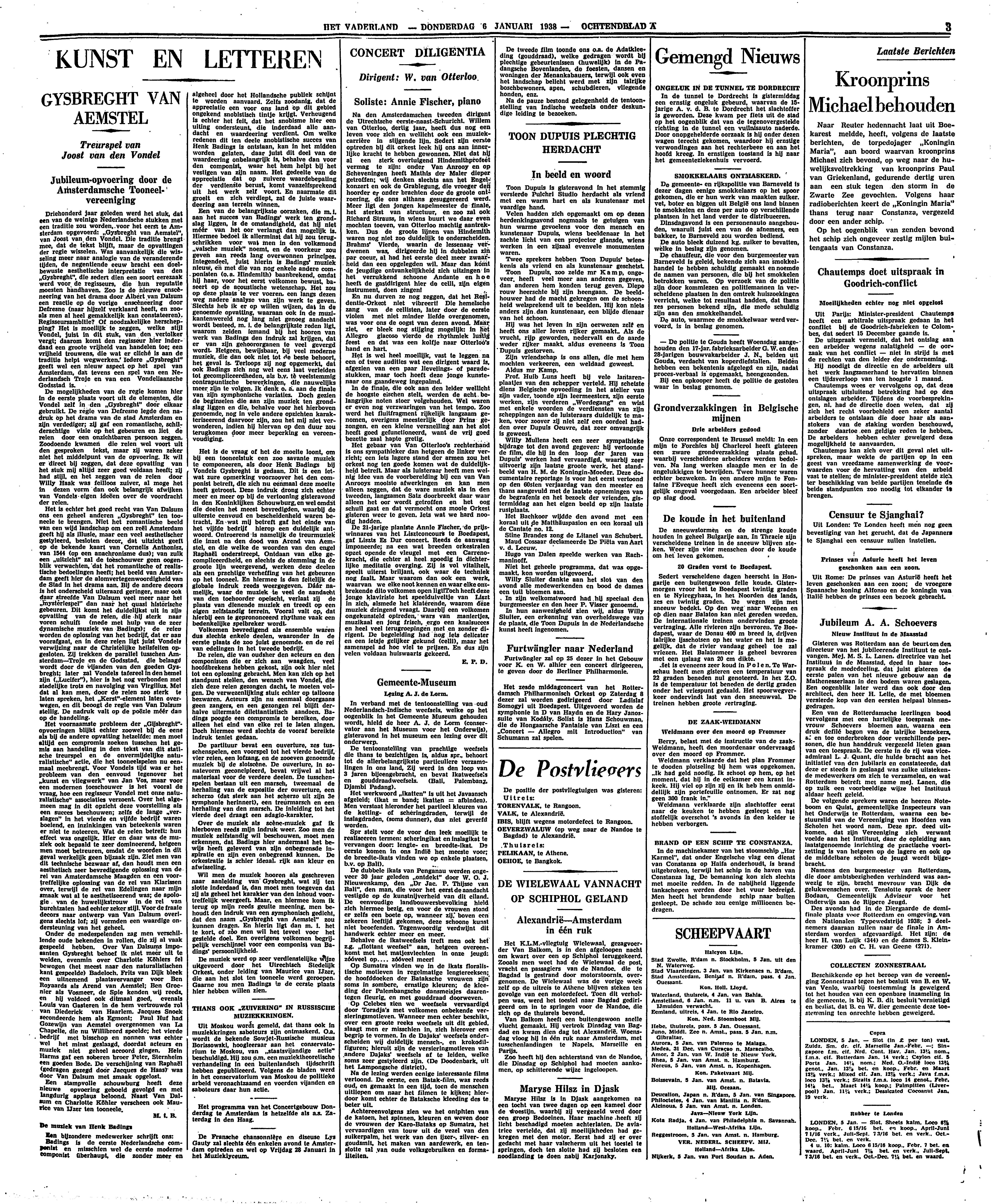 Driehonderd jaar geleden werd het stuk, dat een van de weinige Nederlandsche stukken met een traditie zou worden, voor het eerst te Amsterdam opgevoerd: ‘Gysbreght van Aemstel’, van Joost van den Vondel. Die traditie brengt mee, dat de tekst blijft, maar de opvattingen der regie wisselen. Was aanvankelijk die wisseling meer naar analogie van de veranderende tijden, de negentiende eeuw bracht een doelbewuste aesthetische interpretatie van den ‘Gysbreght’, die sedert dien een soort eerezaak werd voor de regisseurs, die hun reputatie moesten handhaven. Zoo is de nieuwe enscèneering van het drama door Albert van Dalsum een reactie op de vorige enscèneering door Defresne (naar hijzelf verklaard heeft, en zooals men al heel gemakkelijk kan constateeren). Regisseursambitie? Of noodzakelijke herschepping? Het is moeilijk te zeggen, welke stijl Vondel, juist in dit stuk, van den vertolker vergt; daarom komt den regisseur hier inderdaad een groote vrijheid van handelen toe; een vrijheid trouwens, die wat er cliché is aan de traditie helpt wegwerken. Iedere ‘Gysbreght’ geeft wel een nieuw aspect op het spel van Amsterdam, dat tevens een spel van een Nederlandsch Troje en van een Vondeliaansche Godsstad is.