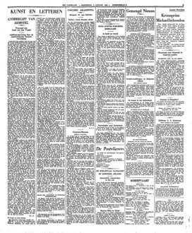 Het voornaamste probleem der ‘Gijsbreght’-opvoeringen blijkt echter zoowel bij de eene als bij de andere opvatting hetzelfde: men moet altijd een compromis zoeken tusschen het gemis aan handeling in den tekst van dit statische treurspel en de onvermijdelijke naturalistische’ actie, die het tooneelspelen nu eenmaal meebrengt. Voor Vondels tijd was er het probleem van den eenvoud tegenover het ‘kunst en vliegwerk’ van Jan Vos, maar voor een modernen toeschouwer is het vooral de vraag, hoe een regisseur Vondel met onze naturalistische’ associaties verzoent. Over het algemeen mag in dit opzicht deze voorstelling als een succes beschouwen; zelfs de lange ‘verslagen’ in het vierde en vijfde bedrijf waren boeiend, en inzinkingen van beteekenis waren er niet te noteeren. Wat de reien betreft: hun effect was ongelijk. Hier en daar was de muziek ook bepaald te zeer domineerend, hetgeen men moet betreuren, omdat de woorden in dit geval werkelijk geen bijzaak zijn. Ziet men van dit technische bezwaar af, dan houdt men een aesthetisch zeer bevredigende oplossing van de rei van Amsterdamsche Maagden en een voortreffelijke oplossing van de rei van Klarissen over, terwijl de rei van Edelingen naar mijn smaak wat al te aesthetiseerend was; de apologie van de huwelijkstrouw in de rei van burchtzaten had echter zeker stijl. Voor de fraaie decors naar ontwerp van Van Dalsum overigens slechts lof; zij vormden een waardige ondersteuning van het geheel.