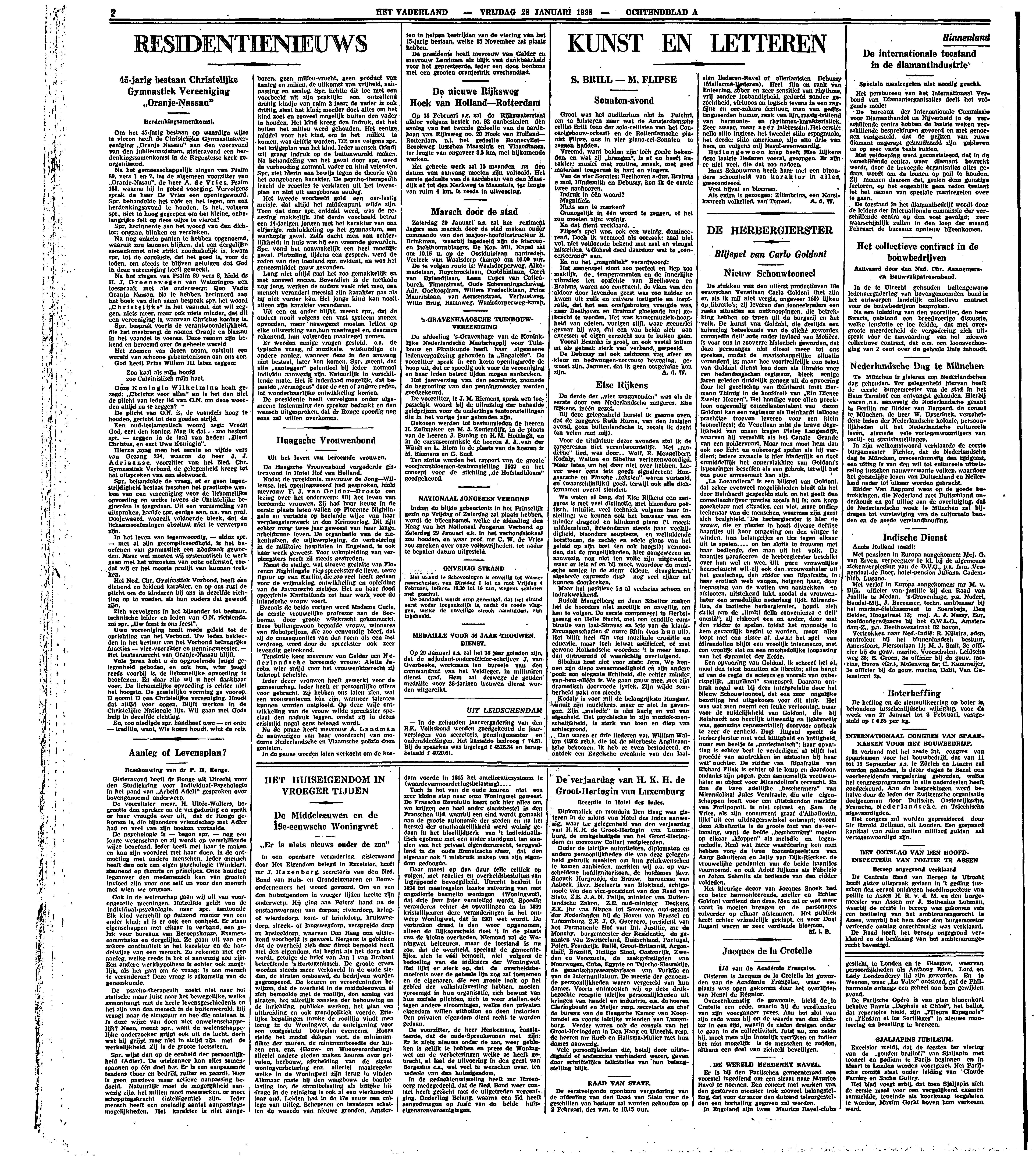 De stukken van den uiterst productieven 18e eeuwschen Venetiaan Carlo Goldoni (het zijn er, als ik mij niet vergis, ongeveer 150) lijken op libretto's; zij leveren den tooneelspelers een reeks situaties en ontknoopingen, die betrekking hebben op typen uit de burgerij en het volk. De kunst van Goldoni, die destijds een zuivering beteekende van de cliché geworden commedia dell' arte onder invloed van Molière, is voor ons in zooverre historisch geworden, dat deze personages niet direct meer tot ons spreken, omdat de maatschappelijke situatie veranderd is; maar hoe voortreffelijk een tekst van Goldoni dienst kan doen als libretto voor een hedendaagschen regisseur, bleek eenige jaren geleden duidelijk genoeg uit de opvoering door het gezelschap van Reinhardt (met Hermann Thimig in de hoofdrol) van ‘Ein Diener Zweier Herren’. Het handige voor allen preektoon ongevoelig comediantentalent van dezen Goldoni kan een regisseur als Reinhardt tallooze prachtige troeven leveren voor een klein tooneelfeest; de Venetiaan mist de brave degelijkheid van onzen tragen Pieter Langendijk, waarvan hij verschilt als het Canale Grande van een poldervaart. Maar men moet hem dan ook zoo licht en onbezorgd spelen als hij verdient; iedere zwaarte is hier hinderlijk en doet onmiddellijk het oppervlakkige van Goldoni's typeeringen beseffen als een gebrek, terwijl het een puur amusement kan zijn.