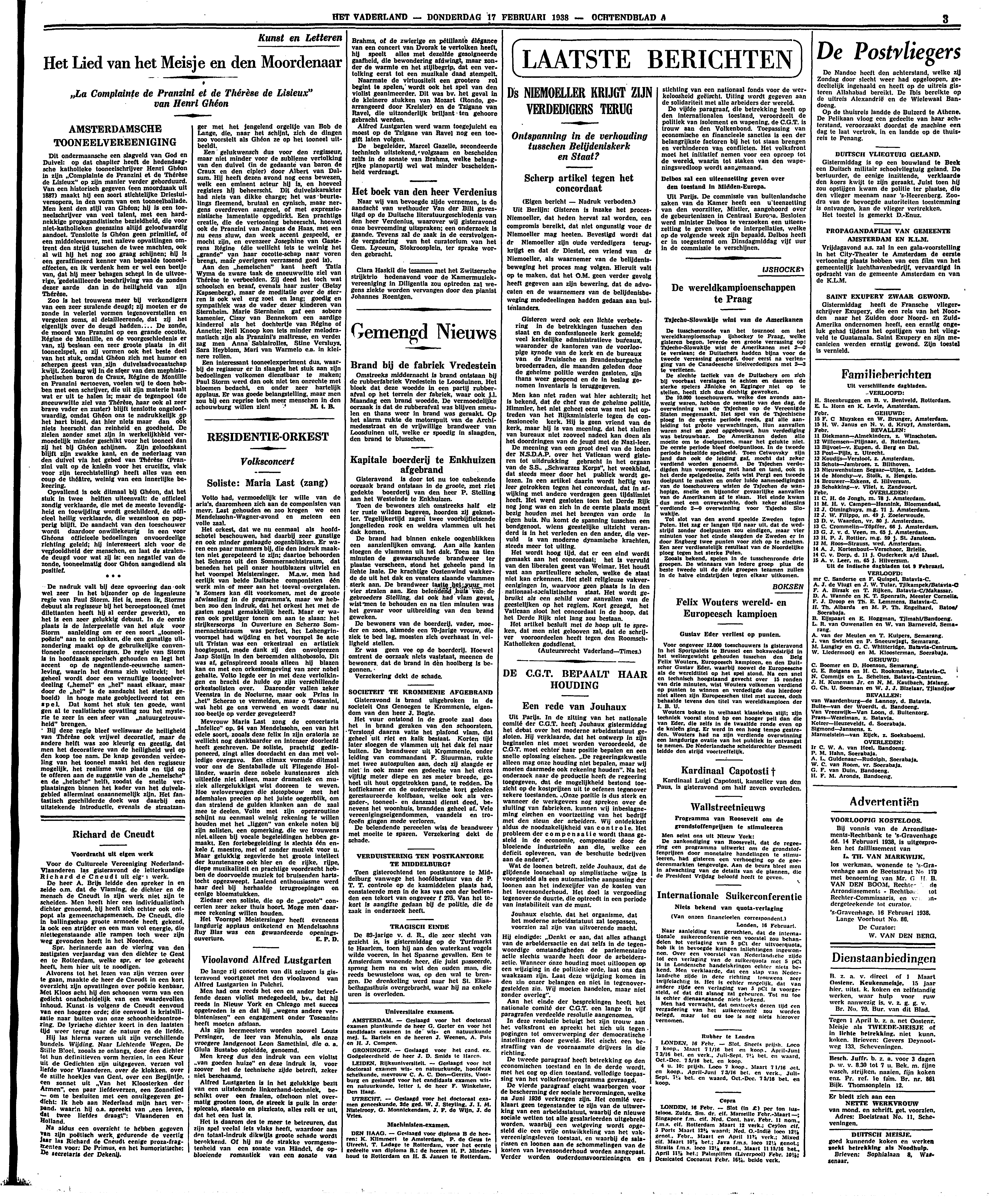 Bij deze regie bleef weliswaar de heiligheid van Thérèse ook vrijwel decoratief, maar de andere helft was zoo kleurig en geestig, dat men het decoratieve van de heiligheid wel op den koop toe nam. De knap gevonden verdeeling van het tooneel maakt het den regisseur mogelijk, het realisme van plaats en tijd op te offeren aan de suggestie van de ‘hemelsche’ en de ‘helsche’ helft, zoodat de snelle verplaatsingen binnen het kader van het duivelsgebied allerminst onaannemelijk zijn. Het fantastisch geschilderde doek was daarbij een uitstekende introductie, evenals de straatzanger met het jengelend orgeltje van Bob de Lange, die, naar het schijnt, zich de dingen zoo voorstelt als Ghéon ze op het tooneel uitbeeldt.