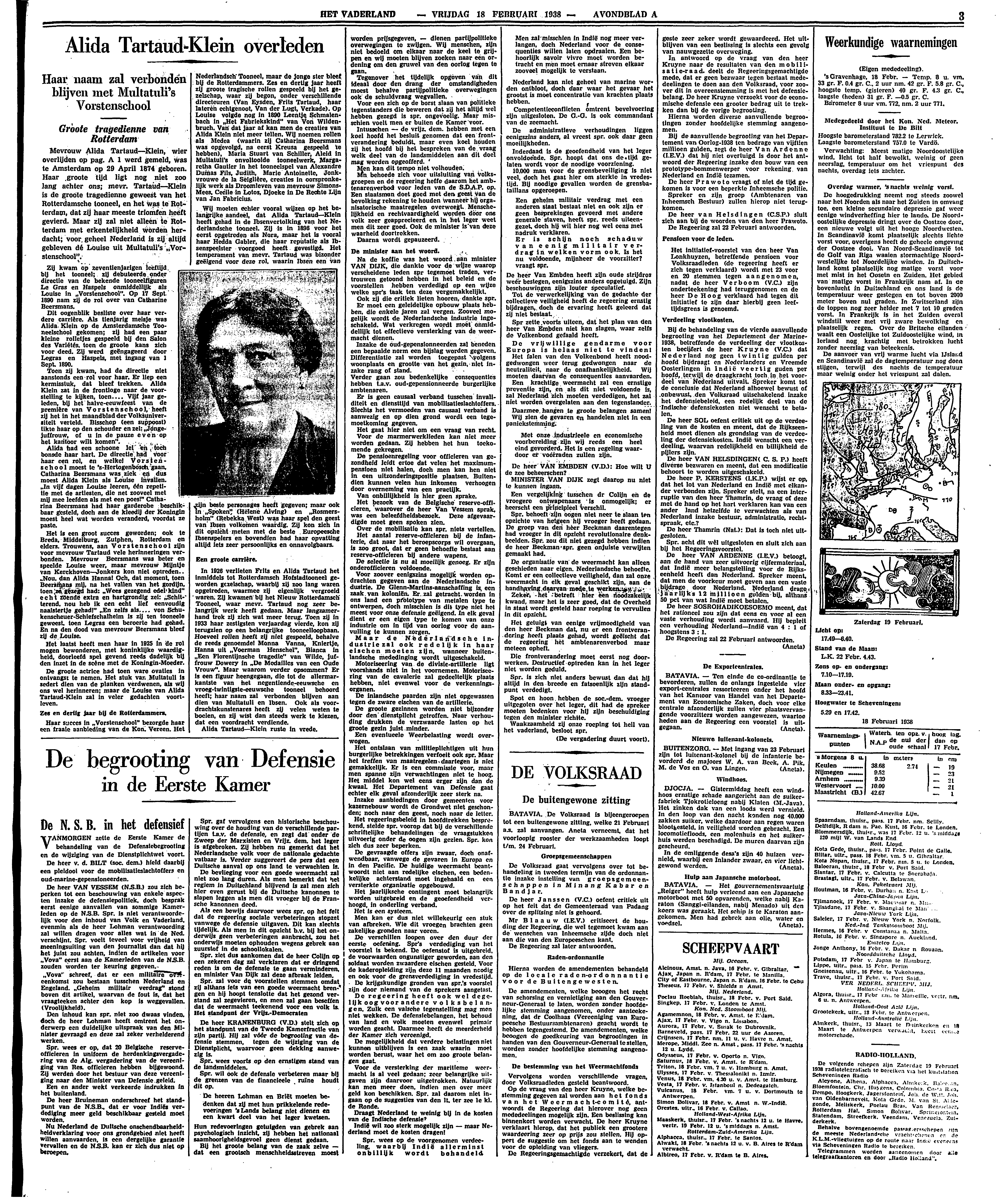 Mevrouw Alida Tartaud - Klein, wier overlijden op pag. A 1 werd gemeld, was te Amsterdam op 29 April 1874 geboren. Haar groote tijd ligt nog niet zoo lang achter ons; mevr. Tartaud - Klein is de groote tragedienne geweest van het Rotterdamsche tooneel, en het was te Rotterdam, dat zij haar meeste triomfen heeft gevierd. Maar zij zal niet alleen te Rotterdam met erkentelijkheid worden herdacht; voor geheel Nederland is zij altijd gebleven dé Louise uit Multatuli's ‘Vorstenschool’.