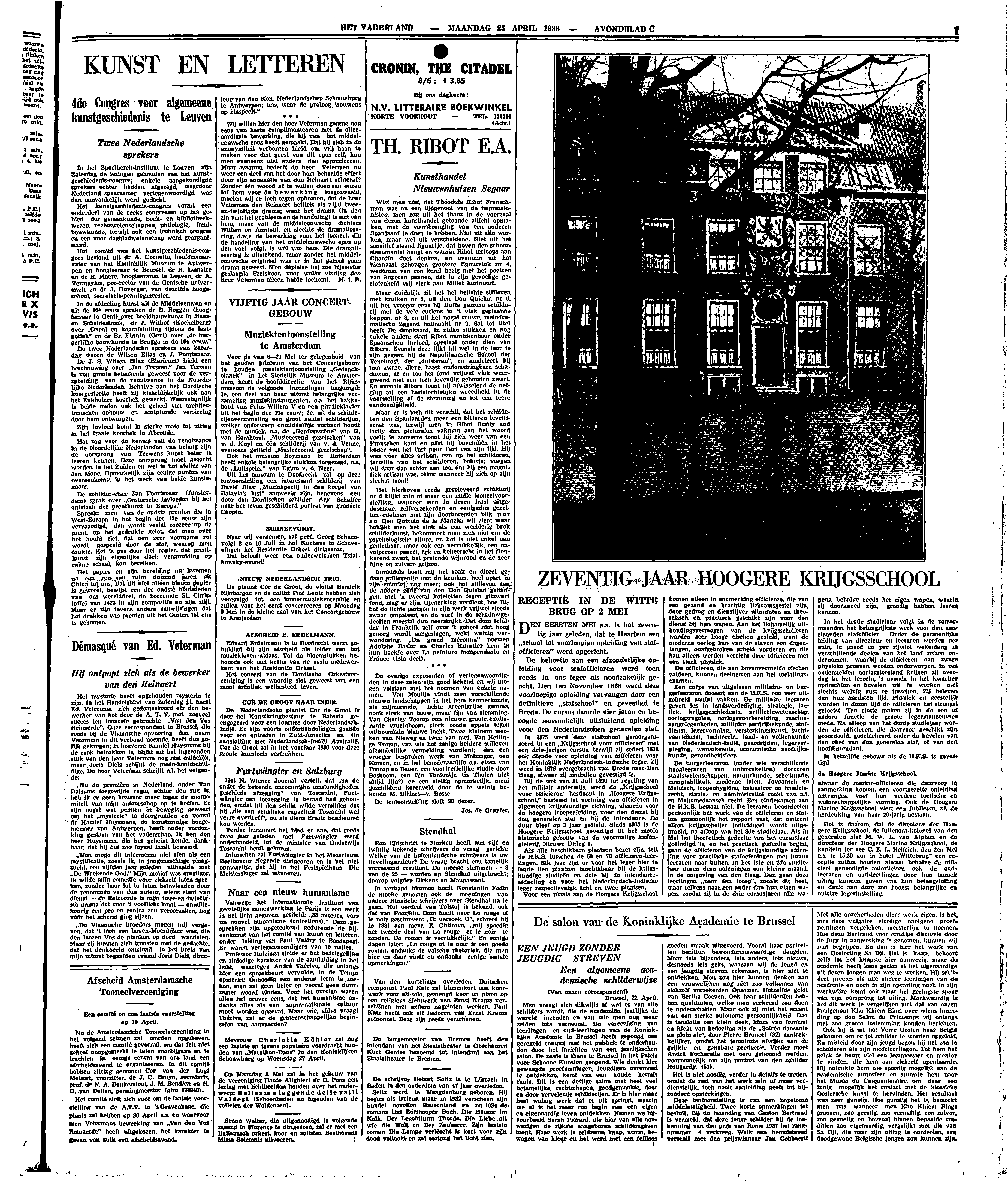 Het mysterie heeft opgehouden mysterie te zijn. In het Handelsblad van Zaterdag j.l. heeft Ed. Veterman zich gedemaskeerd als den bewerker van het door de A.T.V. met zooveel succes ten tooneele gebrachte ‘Van den Vos Reinaerde’. Onze correspondent te Brussel, die reeds bij de Vlaamsche opvoering den naam Veterman in dit verband noemde, heeft dus gelijk gekregen; in hoeverre Kamiel Huysmans bij de zaak betrokken is, blijkt uit het ingezonden stuk van den heer Veterman nog niet duidelijk, maar Joris Diels schijnt de mede-hoofdschuldige. De heer Veterman schrijft n.l. het volgende: