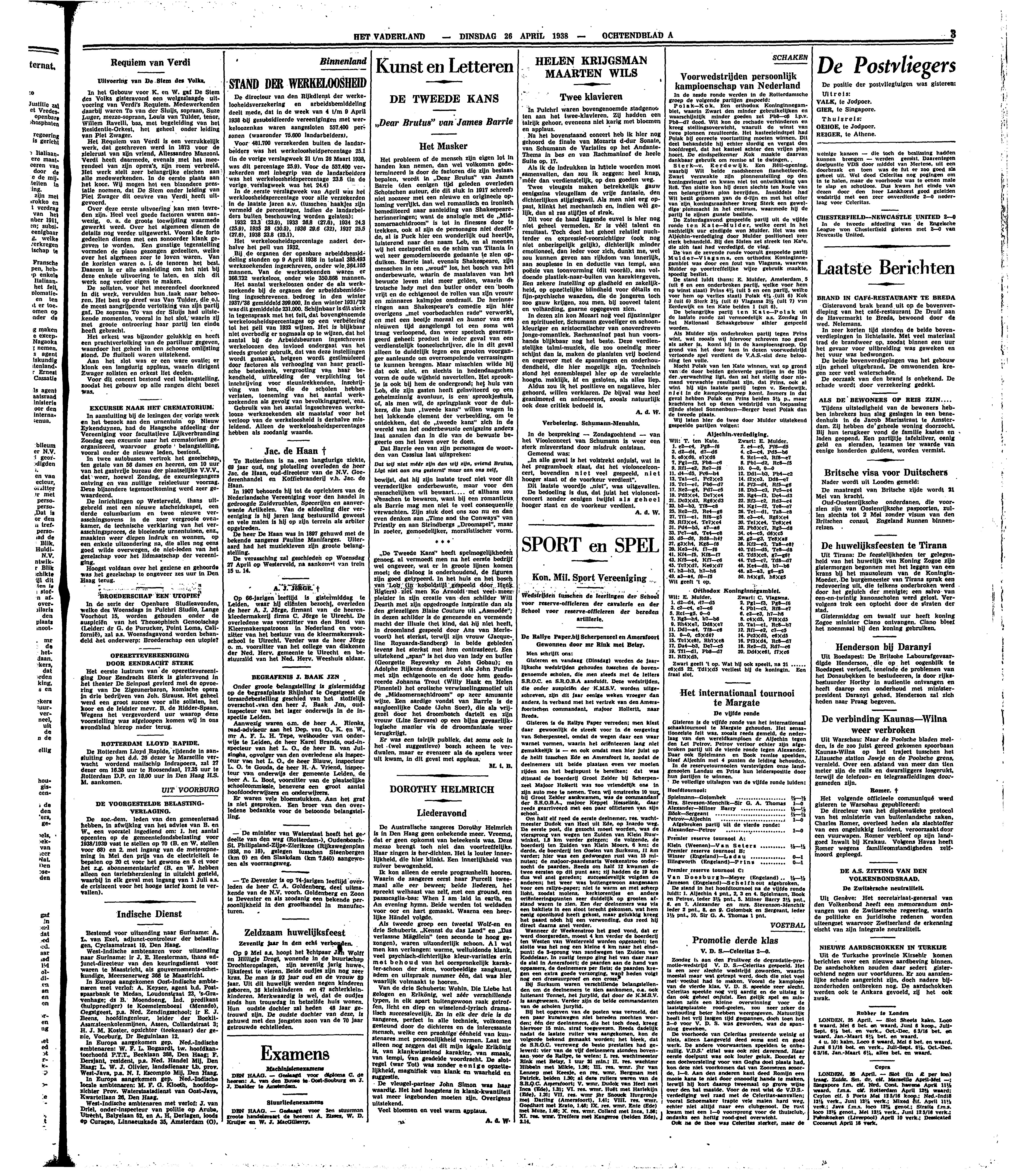 Het probleem of de mensch zijn eigen lot in handen kan nemen, dan wel volkomen gedetermineerd is door de factoren die zijn bestaan bepalen, wordt in ‘Dear Brutus’ van James Barrie (den eenigen tijd geleden overleden Schotschen auteur, die dit stuk in 1917 schreef) niet zoozeer met een nieuwe en origineele oplossing verrijkt, dan wel romantisch en ironisch bemediteerd naar aanleiding van Shakespeare-herinneringen; want de analogie met de ‘Midzomernachtdroom’ is tot in finesses door te trekken, ook al zijn de personages niet dezelfde, al is Puck hier een wonderlijk oud heertje, luisterend naar den naam Lob, en al meenen wij het ezelsprofiel en de schim van Titania in wel zeer gemoderniseerde gedaante te zien opduiken. Barrie laat, evenals Shakespeare, zijn menschen in een ‘woud’ los, het bosch van het onderbewuste, waarin de maatstaven van het bewuste leven niet meer gelden, waarin de trotsche lady met den butler onder een boom vrijt en de echtgenoot de rollen van zijn vrouw en minnares kalmpjes omdraait. De herinneringen aan Shakespeare's comedie zijn hier overigens ‘met voorbedachten rade’ verwerkt, en met een beetje moraal en humor van een nieuwen tijd aangelengd tot een soms wat traag verloopend, dan weer speelsch gearrangeerd geheel: product in ieder geval van een verdienstelijk tooneelschrijver, die in dit geval alleen te duidelijk tegen een grooten voorganger aanleunde om overrompelende verrassingen te kunnen brengen. Maar misschien wilde hij dat ook niet, en slechts in hedendaagschen vorm de oude wijsheid navertellen. Het sprookje is ook bij hem de ondergrond; het huis van Lob, die zijn gasten heeft geïnviteerd op een geheimzinnig avontuur, is een sprookjeshuis, of, als men wil, de springplank voor de duikers, die hun ‘tweede kans’ willen wagen in het lokkende element der verbeelding, om te ontdekken, dat de ‘tweede kans’ zich in de wereld van het onderbewuste eenigszins anders laat aanzien dan in die van de bewuste begeerte om het leven over te doen.
