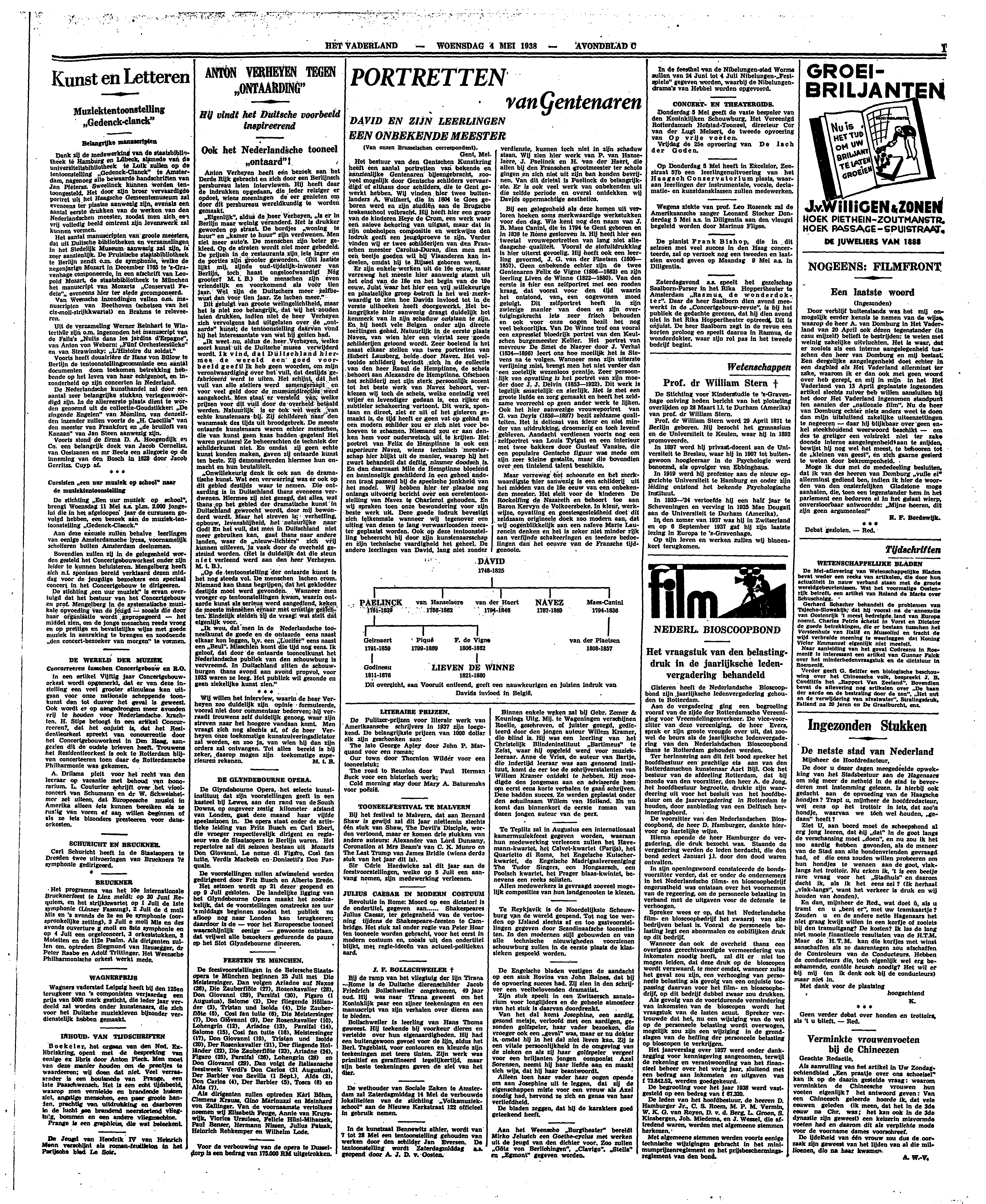 Dit getuigt van groote welingelichtheid, maar het is niet zoo belangrijk, dat wij het zouden laten drukken, indien niet de heer Verheyen zich vervolgens had uitgelaten over de ‘ontaarde’ kunst; de tentoonstelling daarvan vond hij het interessantste van wat hij gezien had.