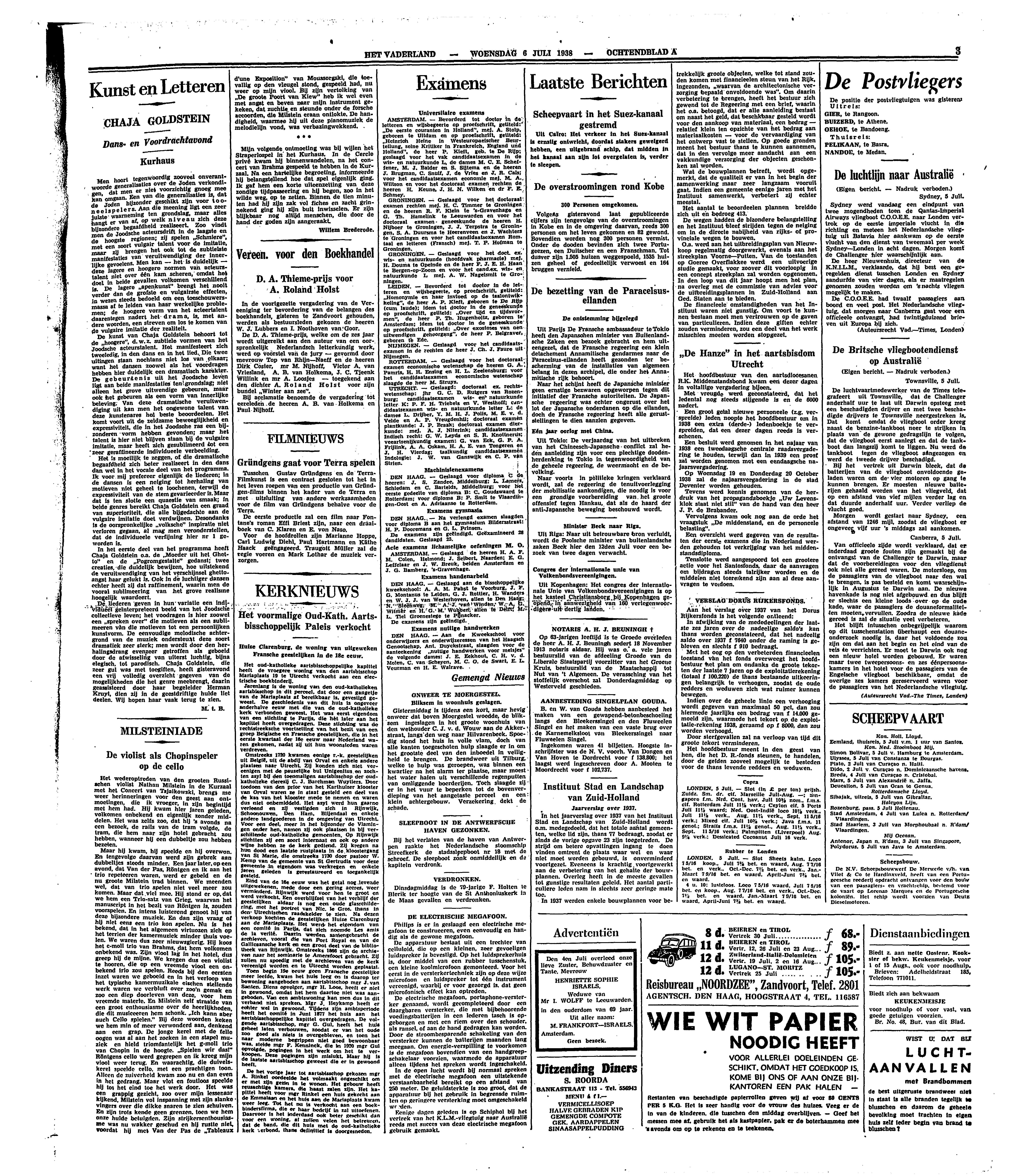 In het eerste deel van het programma heeft Chaja Goldstein o.a. de ‘Moeder uit het Ghetto’ en de ‘Pogromgestalte’ gedanst; twee creaties, die duidelijk bewijzen, hoe uitstekend de veruitwendiging van het verschijnsel ghettoangst haar gelukt is. Ook in de luchtiger dansen echter heeft zij dat raffinement, waarin men de vooral sublimeering van het grove realisme hoogelijk waardeert.