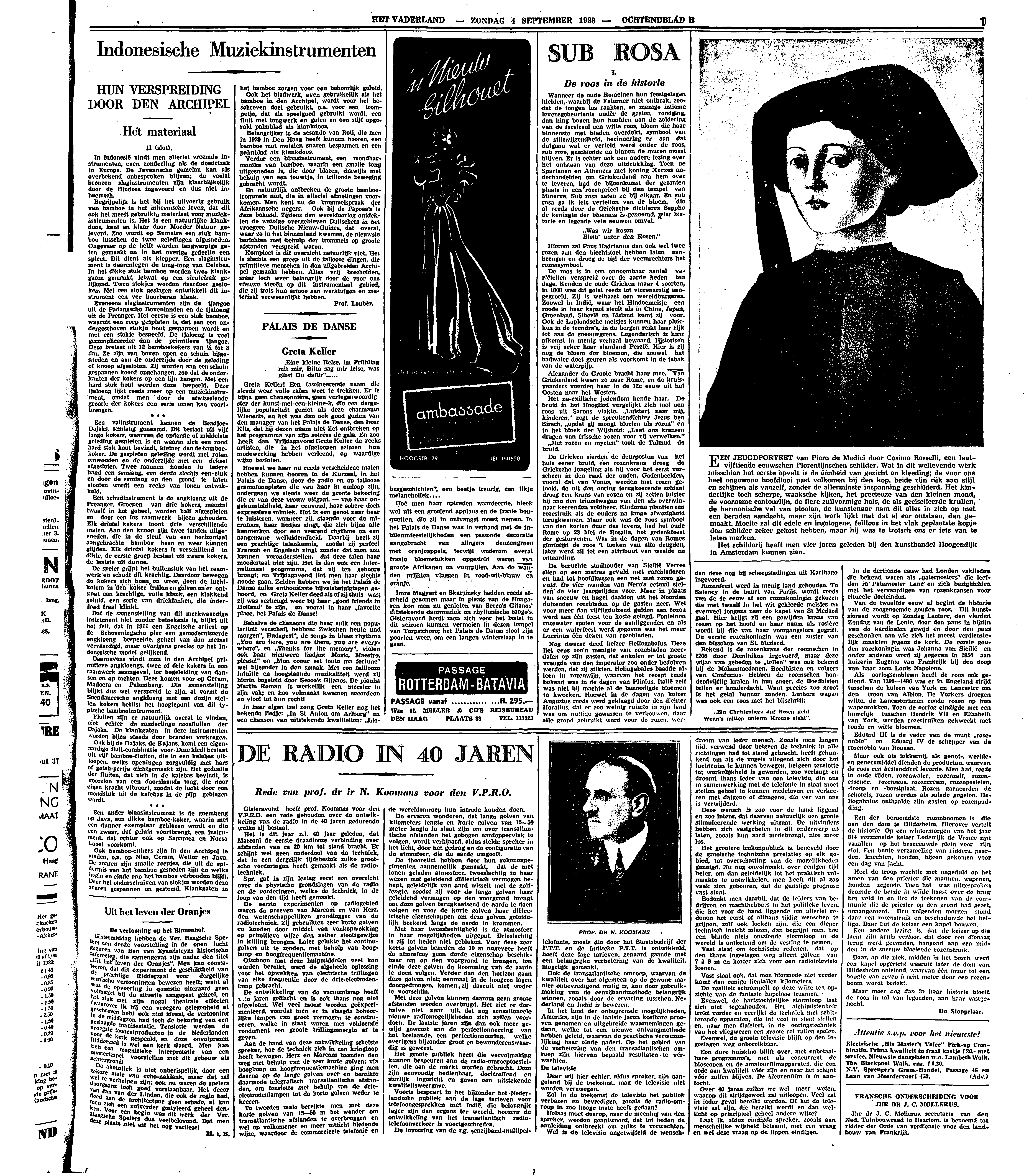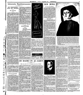 Gistermiddag hebben de Ver. Haagsche Spelers een derde voorstelling in de open lucht gegeven van Ben van Eysselsteyns historische tafereelen, die samengevat zijn onder den titel ‘Uit het leven der Oranjes’. Men kan constateeren, dat dit experiment de geschiktheid van de prachtige Ridderzaal voor dergelijke scenische vertooningen bewezen heeft; want al was de opvoering in quaestie uiteraard geen volmaakt bij de situatie aangepast geheel, en het stuk met zijn nogal theatrale effecten (waarover ik bij een vroegere gelegenheid al geschreven heb) ook niet ideaal, de vertooning in de middagzon had toch de bekoring van een geslaagde manifestatie. Tenslotte werden de vroegste tooneelproducten in de Nederlanden voor de kerk gespeeld, en deze onvolprezen Ridderzaal is wel een kerk waard. Men kan zich een magnifieke interpretatie van een mysteriespel voorstellen met dit gebouw als achtergrond!