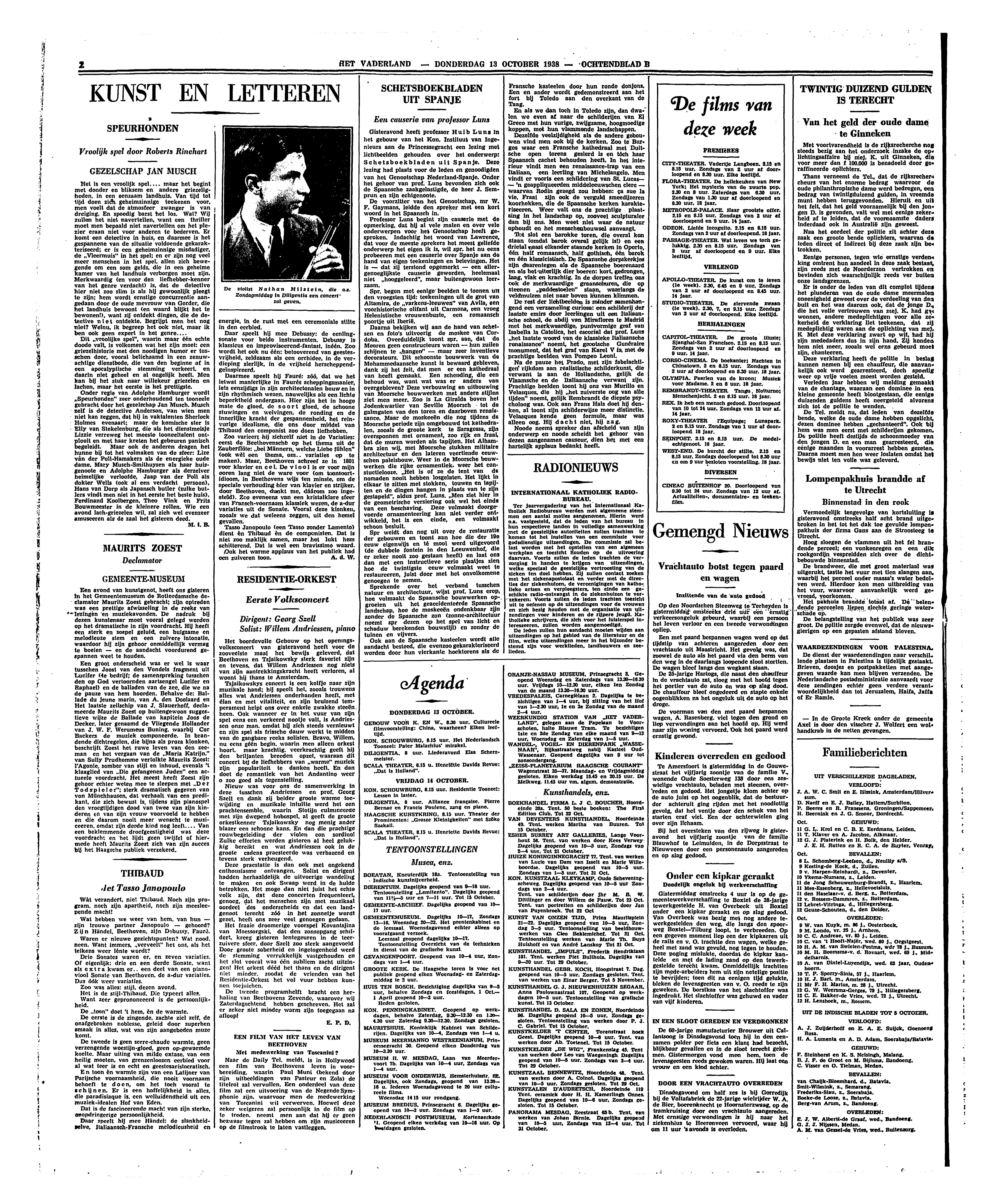 Het is een vroolijk spel.... maar het begint met donder en bliksem en andere griezeligheden, in een eenzaam landhuis. Van tijd tot tijd doen zich geheimzinnige teekenen voor, men voelt dat de atmosfeer zwanger is van dreiging. En spoedig barst het los. Wat? Wij zullen het niet navertellen, want een thriller moet men bepaald niet navertellen om het plezier eraan niet voor anderen te bederven. Er komt een detective in huis, en daarmee is het gespannene van de situatie voldoende gekarakteriseerd; er is een geheimzinnige misdadiger, de ‘Vleermuis’ in het spel; en er zijn nog veel meer menschen in het spel, allen zich bewegende om een som gelds, die in een geheime kamer van het landhuis verborgen moet zijn. Merkwaardig (en voor den liefhebber-kenner van het genre verdacht) is, dat de detective hier niet zoo slim is als hij gewoonlijk pleegt te zijn; hem wordt ernstige concurrentie aangedaan door de oude mevrouw van Gorder, die het landhuis bewoont (en waard blijkt het te bewonen!), want zij ontdekt dingen, die de detective niet ontdekte. Begrijpt men het nog niet? Welnu, ik begreep het ook niet, maar ik ben ook geen expert in het genre....
