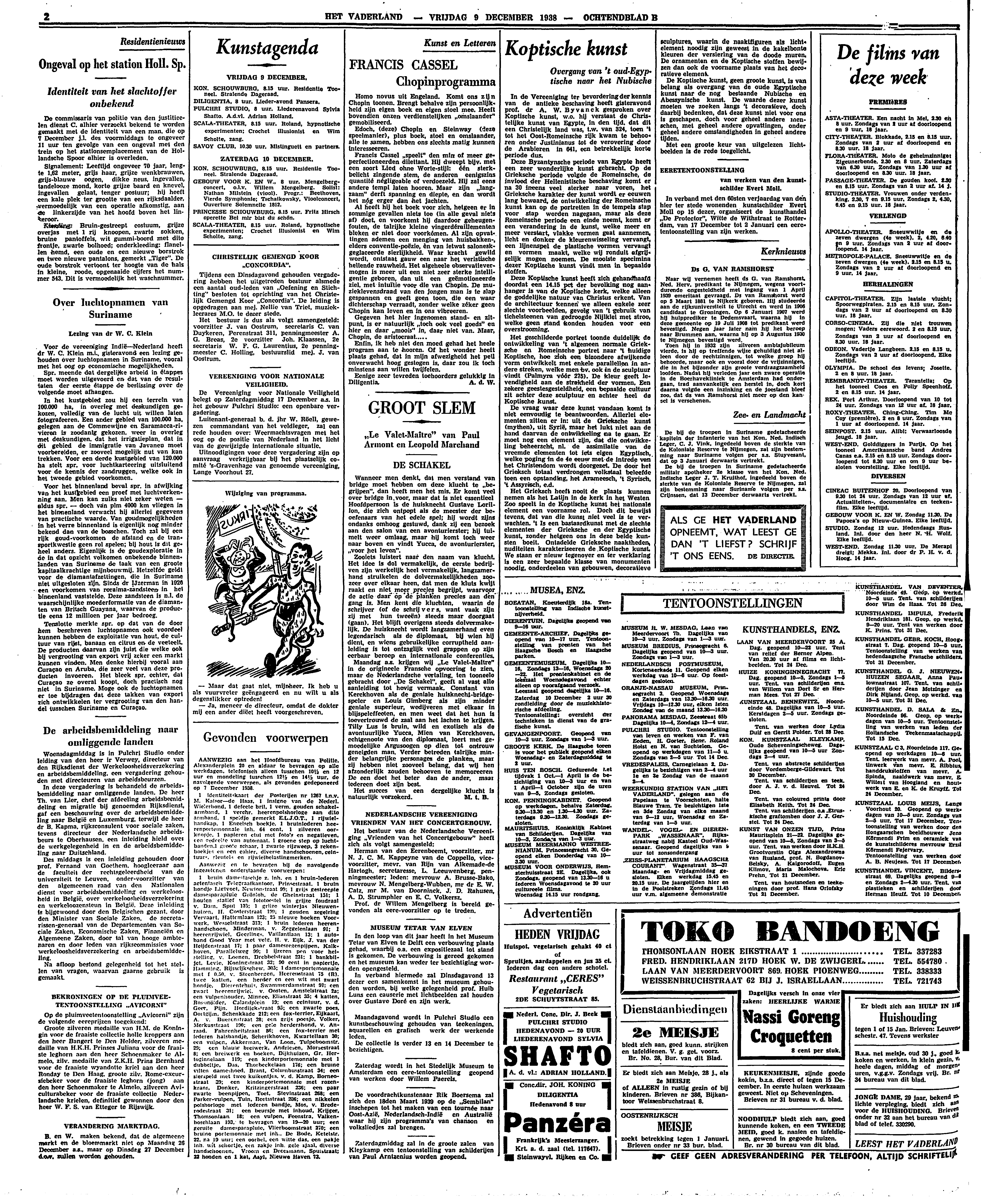 Maandag a.s. krijgen wij ‘Le Valet-Maitre’ in de origineele Fransche opvoering te zien, maar de Nederlandsche vertaling, ten tooneele gebracht door ‘De Schakel’, geeft al vast alle aanleiding tot hevig vermaak. Constant van Kerckhoven als de geniale huisknecht-bridgespeler en Louis Gimberg als zijn minder geniale superieur, wedijveren met elkaar in blijspeleffecten, en men weet dat het hun is toevertrouwd de zaal aan het lachen te krijgen. Tilly Lus is bruin, wild en exotisch als de avontuurlijke Yucca, Mien van Kerckhoven, echtgenoote van den diplomaat, loert met gemoedelijke Argusoogen op dien tot ontrouw geneigden man. Verder betreden talrijke minder belangrijke personages de planken, maar zij hebben niet zooveel belang, dat wij hen afzonderlijk zouden behoeven te memoreeren De een doet het beter dan de ander, maar iedereen doet zijn best.