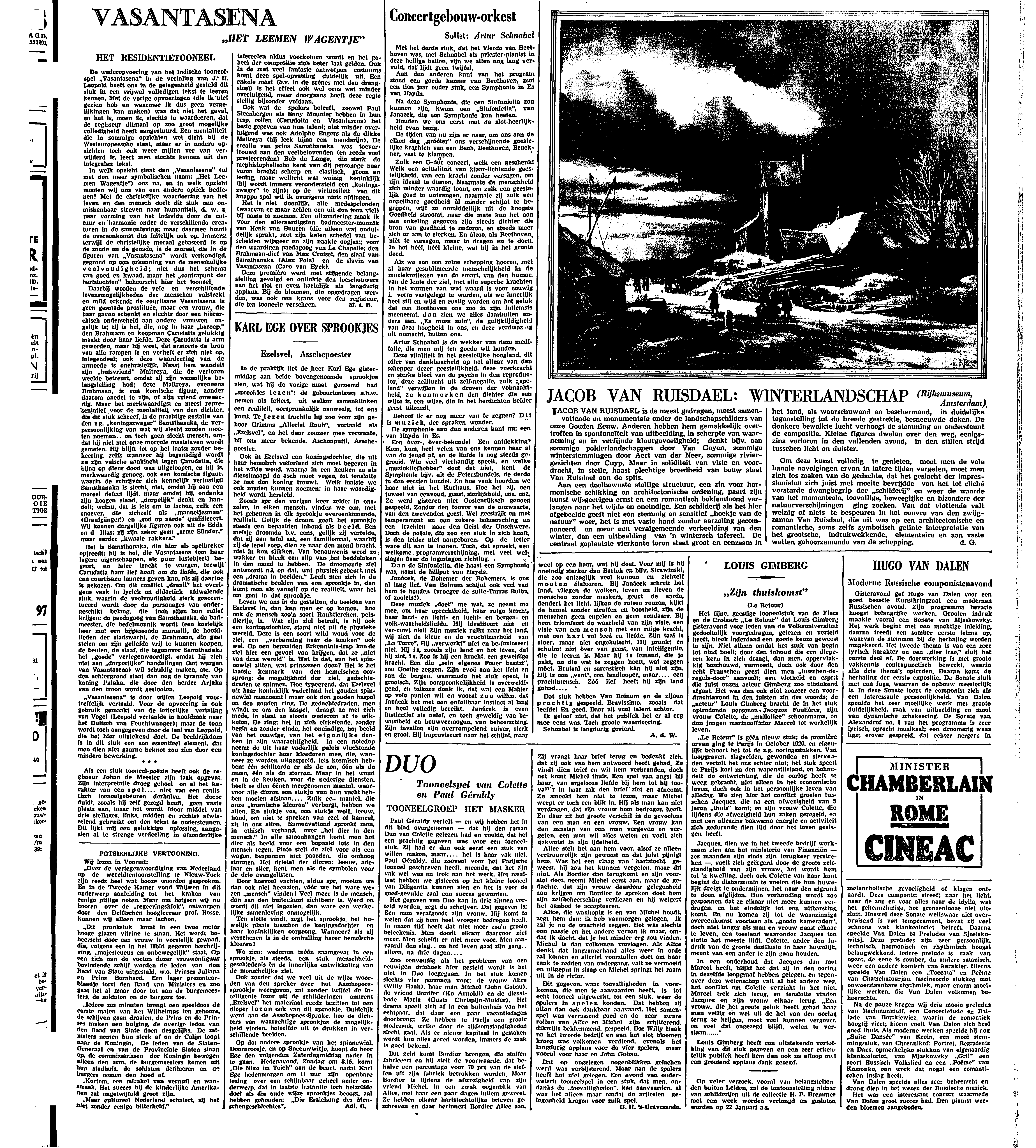 Ook wat de spelers betreft, zoowel Paul Steenbergen als Enny Meunier hebben in hun resp. rollen (Çarudatta en Vasantasena) het beste gegeven van hun talent; niet minder overtuigend was ook Adolphe Engers als de dikke Maitreya (hij leek bijna een mandarijn). De creatie van prins Samsthanaka was toevertrouwd aan den veelbelovenden (en reeds veel presteerenden) Bob de Lange, die sterk de mephistophelische kant van dit personage naar voren bracht: scherp en elastisch, groen en lenig, maar wellicht wat weinig koninklijk (hij wordt immers verondersteld een ‘koningszwager’ te zijn); op de virtuositeit van dit knappe spel wil ik overigens niets afdingen.