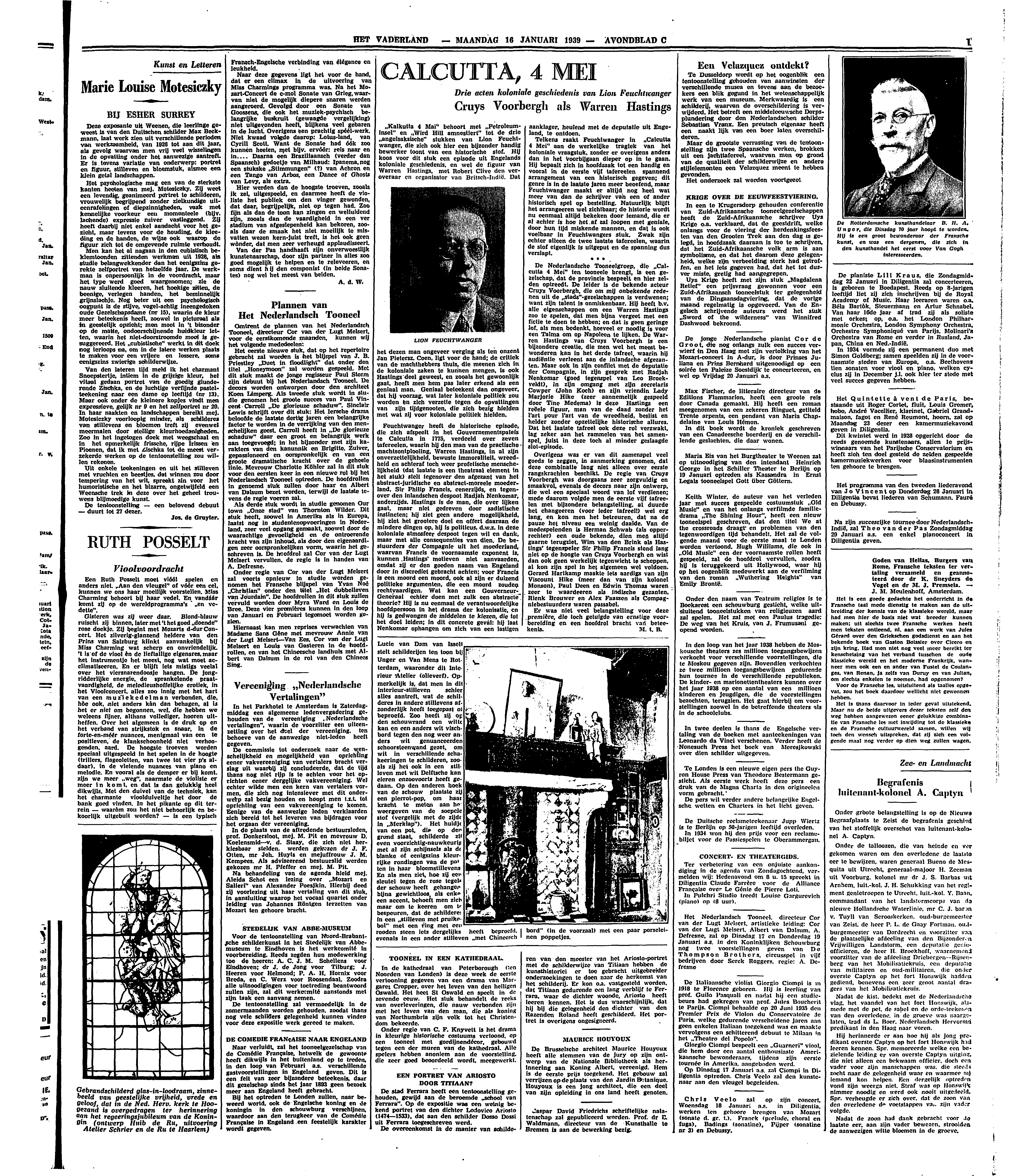‘Kalkutta 4 Mai’ behoort met ‘Petroleuminsel’ en ‘Wird Hill amnestiert’ tot de drie ‘angelsaksische’ stukken van Lion Feuchtwanger, die zich ook hier een bijzonder handig bewerker toont van een historische stof. Hij koos voor dit stuk een episode uit Engelands koloniale geschiedenis, en wel de figuur van Warren Hastings, met Robert Clive den veroveraar en organisator van Britsch-Indië. Dat het dezen man ongeveer verging als ten onzent Jan Pietersz. Coen, ligt voor de hand; de critiek van de machthebbers thuis, die meenen zich in de koloniale zaken te kunnen mengen, is ook Hastings deel geweest, en zooals het gewoonlijk gaat, heeft men hem pas later erkend als een geniaal man. Geniaal beteekent dan ongeveer, dat hij voorzag, wat later koloniale politiek zou worden en zich verzette tegen de opvattingen van zijn tijdgenooten, die zich bezig hielden met wat zij voor koloniale politiek hielden.