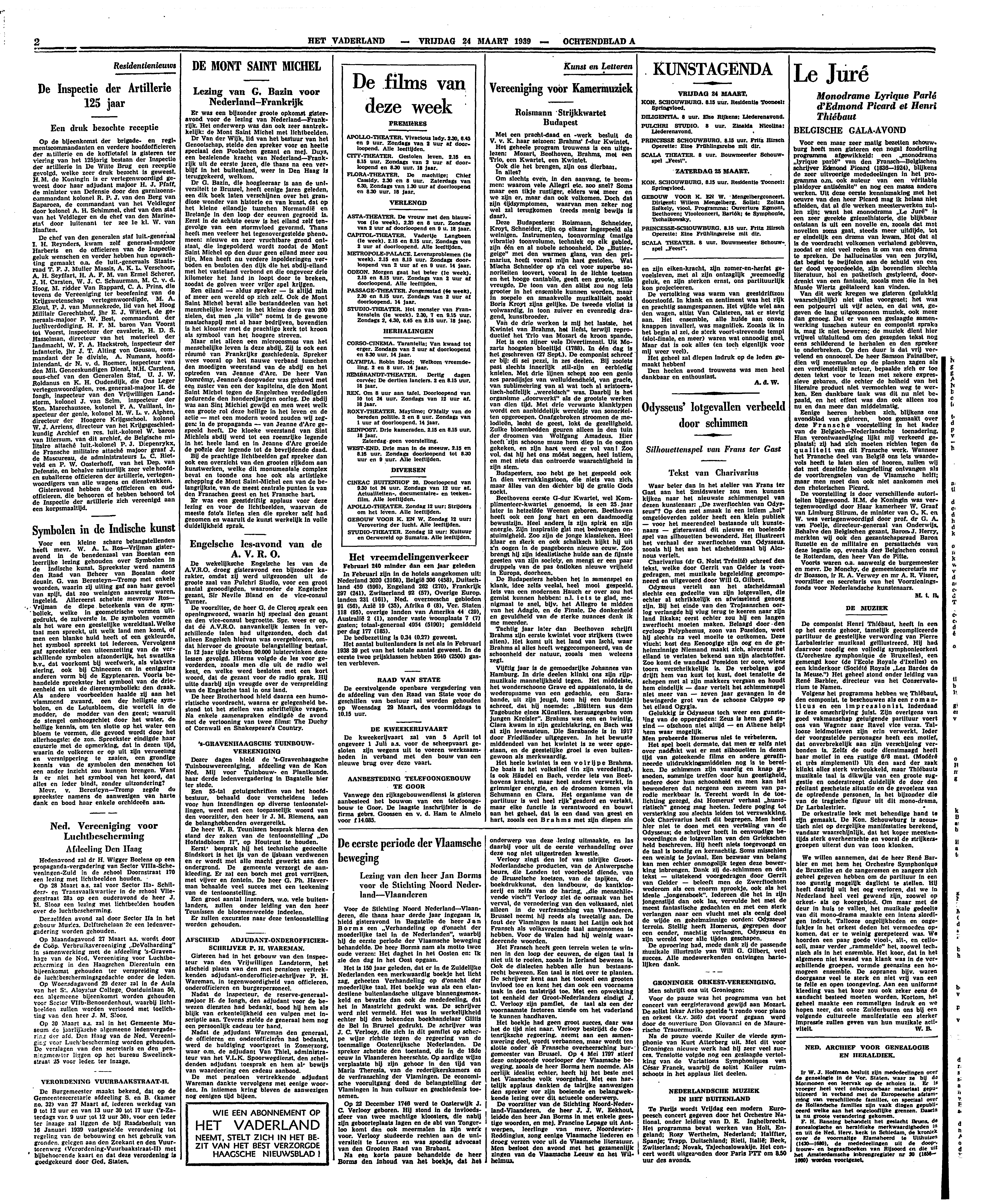 Eenige heeren hebben zich, blijkens ons avondblad van gisteren, boos gemaakt over deze Fransche voorstelling in het kader van de Belgisch -Nederlandsche toenadering. Hun verontwaardiging lijkt mij verkeerd geplaatst; zij had zich moeten richten tegen de qualiteit van dit Fransche werk. Wanneer het Fransche deel van België ons iets waardevols heeft te laten zien of hooren, zullen wij dat met dezelfde belangstelling ontvangen als de voortbrengselen van de Vlaamsche helft; maar men moet dan ook niet aankomen met den rhetorischen Picard.