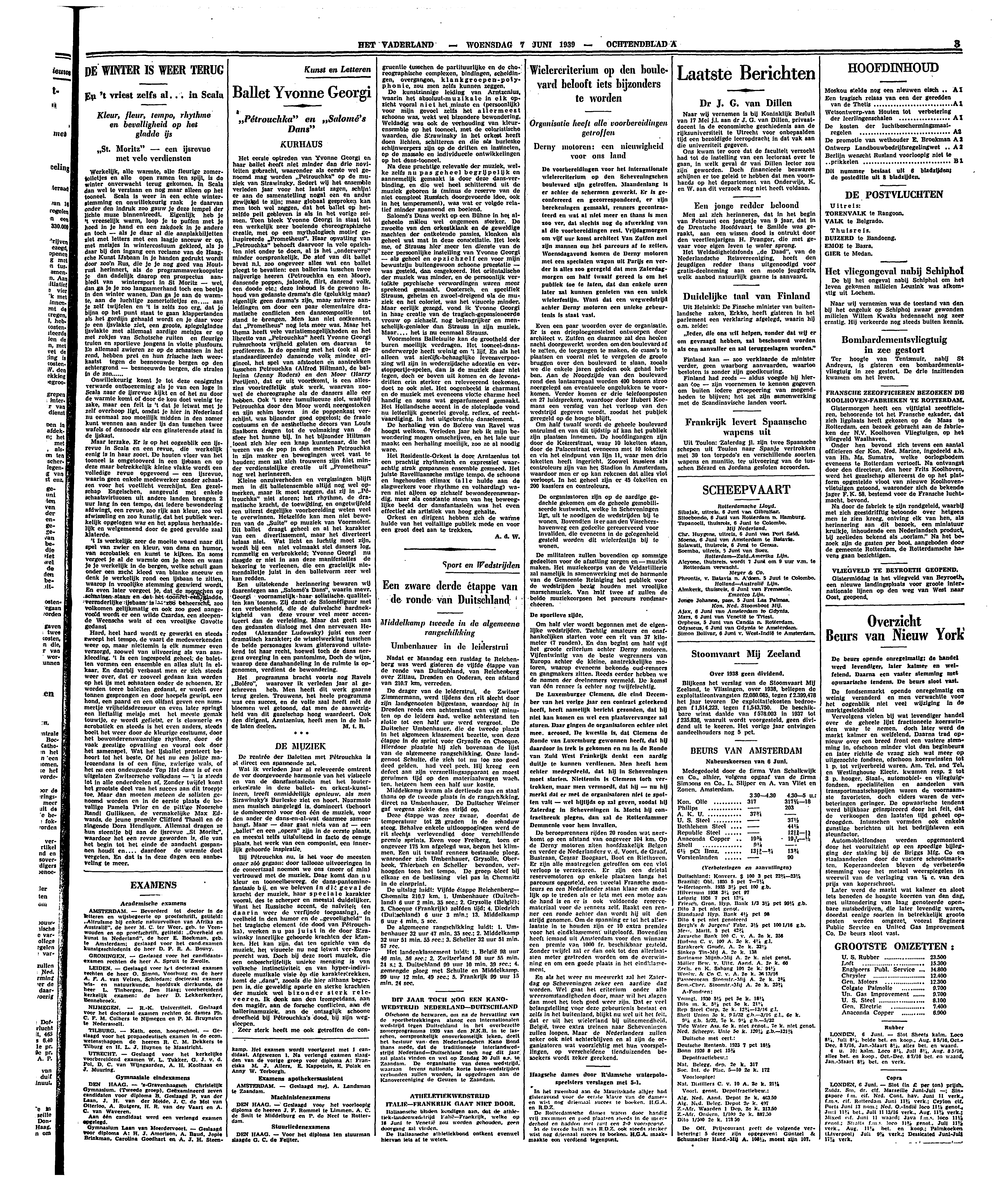 Kleine onzuiverheden en vergissingen blijft men in dit balletensemble altijd nog wel opmerken, maar ik moet zeggen, dat zij in ‘Pétrouchka’ niet storen; het rhythme, de dramatische kracht, de toewijding, en ongetwijfeld een uiterst degelijke voorbereiding weten veel te overwinnen. Hetzelfde kan men niet beweren van de ‘Suite’ op muziek van Voormolen. Dit ballet draagt geheel en al het karakter van een divertissement, maar het diverteert helaas niet. Wat licht en luchtig moet zijn, wordt bij een niet volmaakt stel dansers log, rommelig en verbrokkeld; Yvonne Georgi nu slaagde er niet in aan deze manifestaties de bekoring te verleenen, die een gracielijk niemendalletje juist in den balletvorm zeer wel kan redden.
