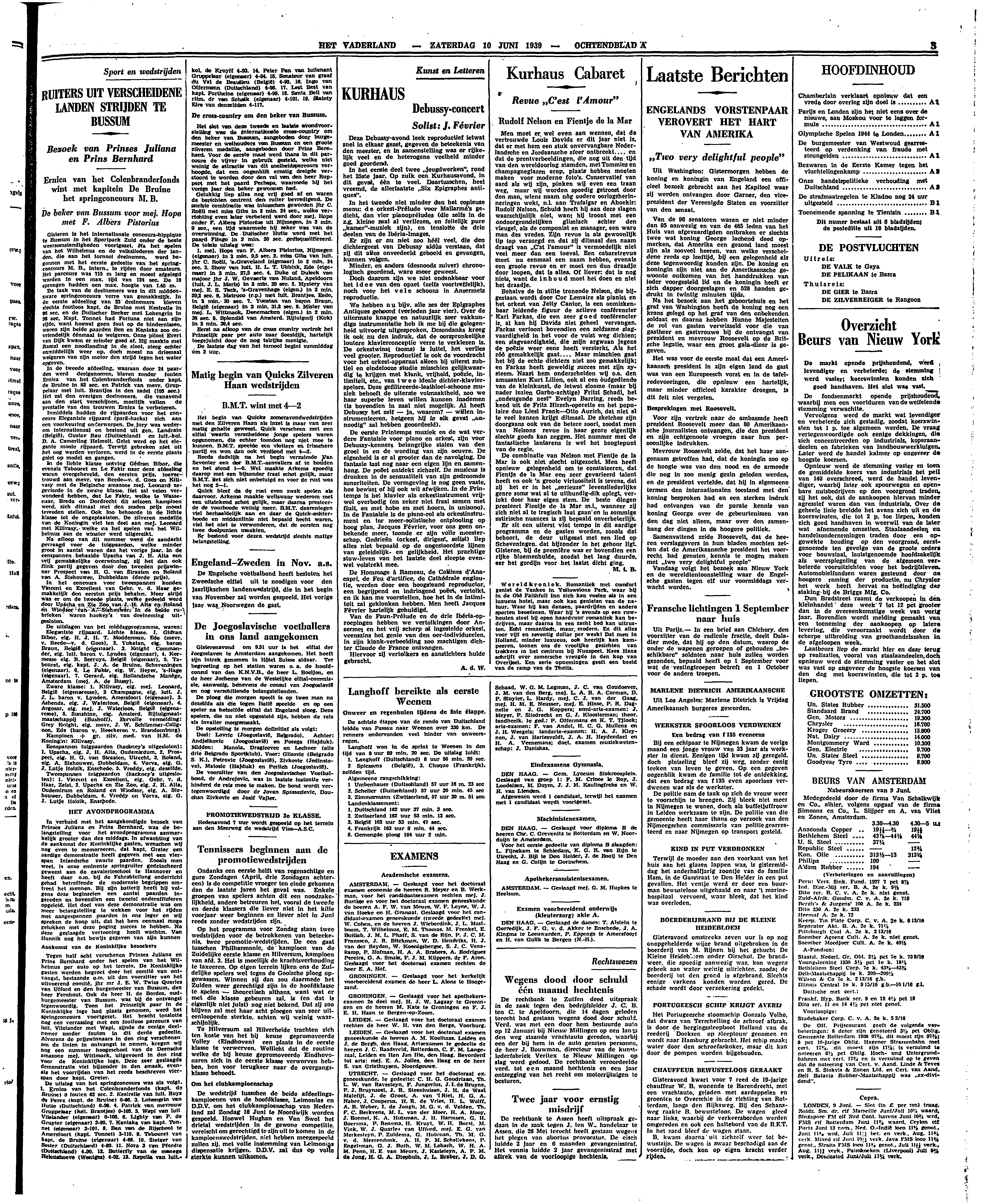 Er zit een uiterst vlot tempo in dit aardige programma en de gasten worden, zooals dat behoort, de deur uitgezet met een lied op Scheveningen, dat bijzonder in het gehoor ligt. Gisteren, bij de première was er bovendien een rijke bloemenhulde, zoodat het lang duurde, eer het gordijn voor het laatst dicht ging.
