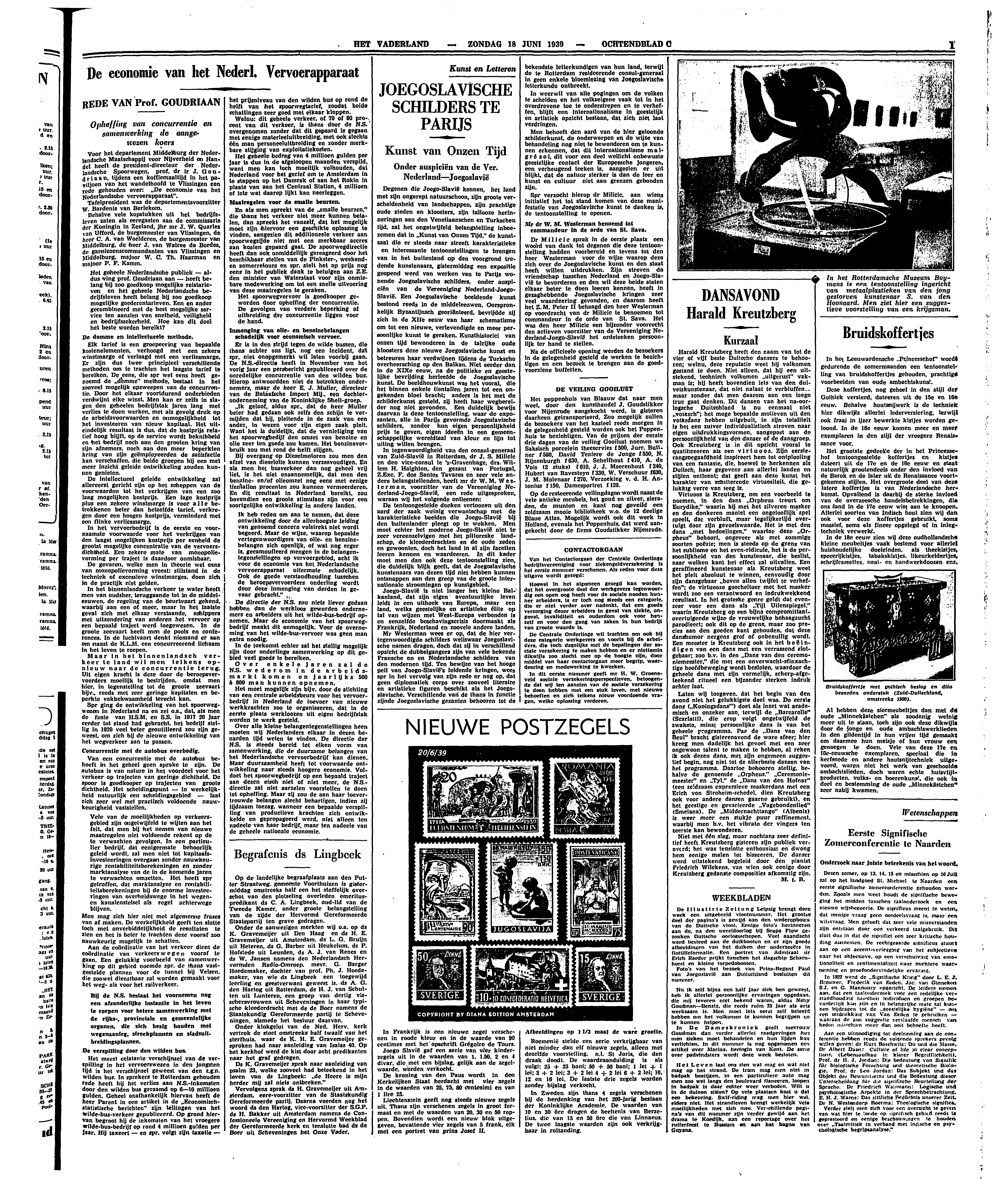 Harald Kreutzberg heeft den naam van tot de vier of vijf beste Duitsche dansers te behooren; welnu, deze reputatie weet hij volkomen gestand te doen. Niet alleen, dat hij een uitstekend, technisch volkomen ‘uitgerust’ vakman is; hij heeft bovendien iets van den duivelskunstenaar, dat niet nalaat te verbluffen.. maar zonder dat men daarom aan een leege truc gaat denken. Dit dansen van het na-oorlogsche Duitschland is nu eenmaal niet ‘volksch’; het moge bepaalde motieven uit den volksdans hebben uitgebuit, in zijn totaliteit is het een zuiver individualistisch streven naar eigen uitdrukkingsvormen, aangepast aan de persoonlijkheid van den danser of de dansgroep. Ook Kreutzberg is in dit opzicht vooral te qualificeeren als een virtuoos. Zijn eersterangsbegaafdheid inspireert hem tot ontplooiing van een fantasie, die, hoewel te herkennen als Duitsch, haar gegevens aan allerlei landen en stijlen ontleent; dat geeft aan deze kunst het karakter van schitterende virtuositeit, die gelukkig verre van leeg is.