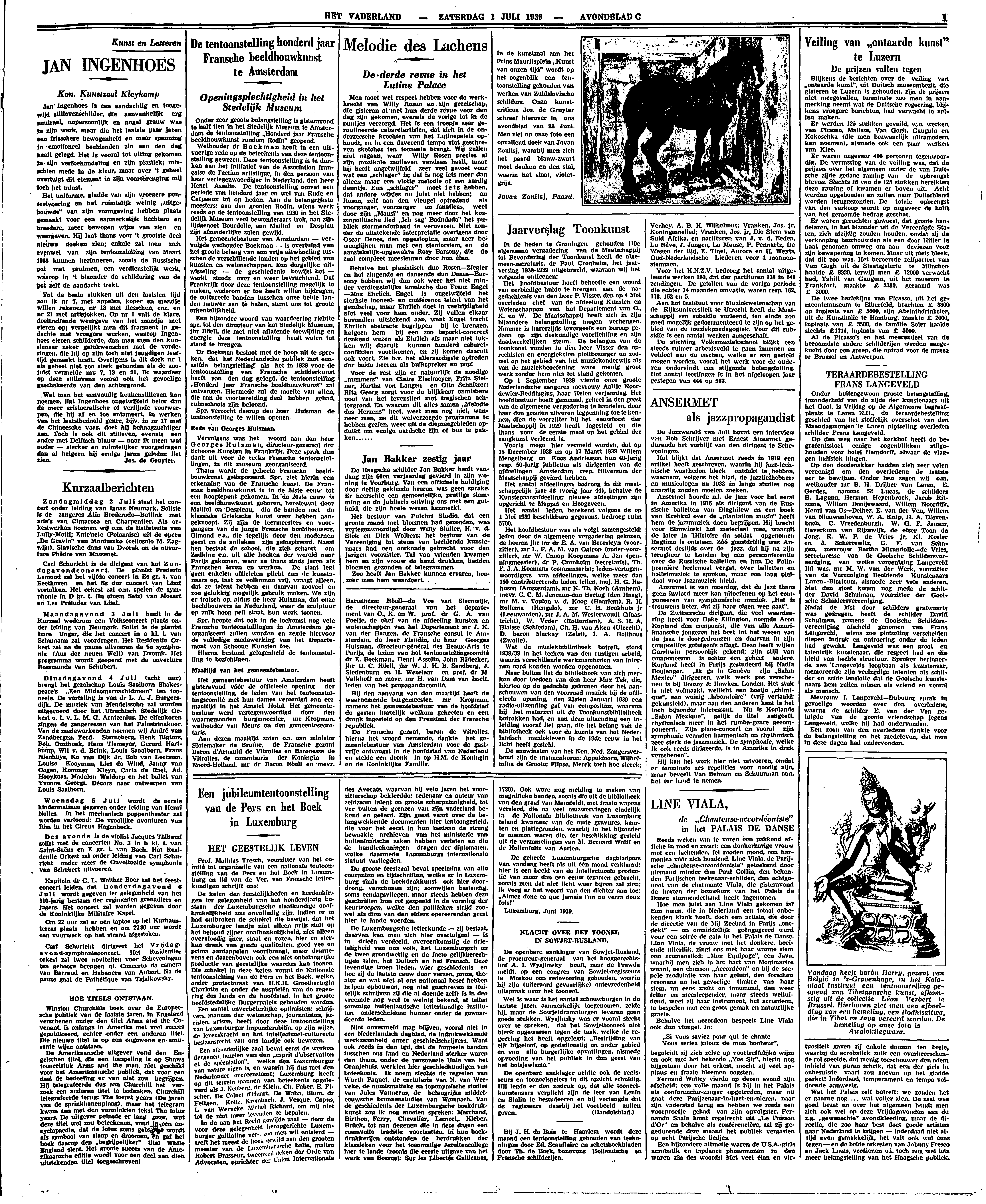 Men moet wel respect hebben voor de werkkracht van Willy Rosen en zijn gezelschap, die gisteren al met hun derde revue voor den dag zijn gekomen, evenals de vorige tot in de puntjes verzorgd. Het is een troepje zeer geroutineerde cabaretartisten, dat zich in de onderzeesche krochten van het Lutinepaleis ophoudt, en in een daverend tempo vlot geschreven sketches ten tooneele brengt. Wij zullen niet nagaan, waar Willy Rosen precies al zijn muzikale motieven vandaan haalt, maar hij heeft ongetwijfeld zeer veel gevoel voor wat een ‘schlager’ is; dat is nog iets meer dan alleen maar een vlotte melodie of een aardig deuntje. Een ‘schlager’ moet iets hebben, dat andere wijsjes nu juist niet hebben; en Rosen, zelf aan den vleugel optredend als voorganger, voorzanger en fanaticus, weet door zijn ‘Mausi’ en nog meer door het kosmopolitische lied ‘Ich sag' Badndada’ het publiek stormenderhand te veroveren. Niet zonder de uitstekende interpretatie overigens door Oscar Denes, den opgestopten, maar zeer beweeglijken man met een stentorstem, en de aanstekelijk-opgewekte Rosy Barsony, die de zaal compleet meesleuren door hun élan.