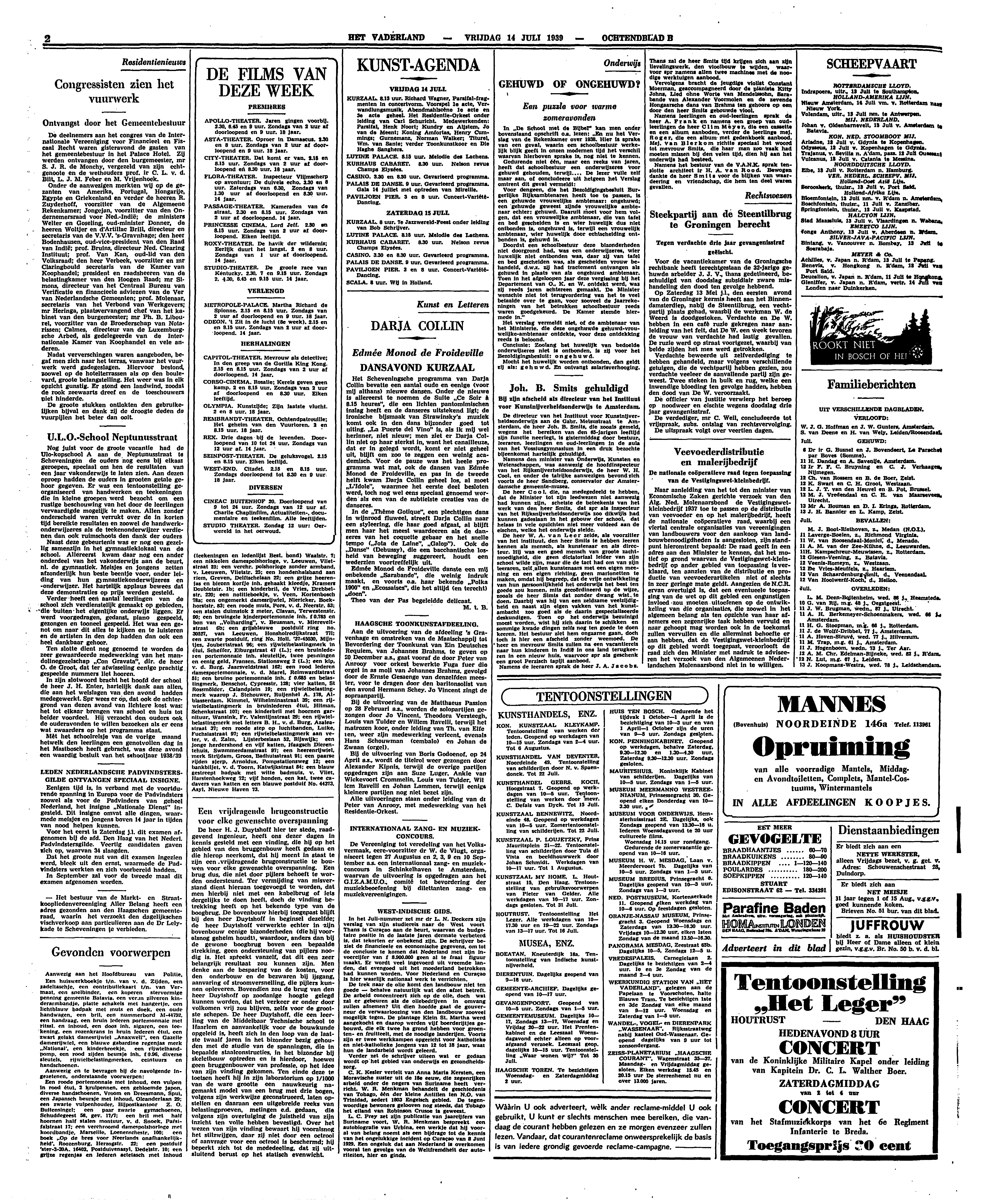 Het Scheveningsche programma van Darja Collin bevatte een aantal oude en eenige (voor mij althans) nieuwe dansen. Onder de nieuwe is allereerst te noemen de Suite ‘Ce Soir à 8.15 heures’, die een lichten pantomimischen inslag heeft en de danseres uitstekend ligt; de ironische bijsmaak van Strawinsky's muziek komt ook in den dans bijzonder goed tot uiting. ‘La Puerte del Vino’ is, als ik mij wel herinner, niet nieuw; men ziet er Darja Collin niet op haar sterkst in, want het canailleuze, dat er in gelegd wordt, komt er niet geheel uit, blijft om zoo te zeggen een weinig academisch. Voor de pauze was het heele programma wat mat, ook de dansen van Edmée Monod de Froideville, en pas in de tweede helft kwam Darja Collin geheel los, al moet ‘L'Idole’, waarmee het eerste deel besloten werd, toch nog wel eens speciaal genoemd worden als een van de subtielste creaties van de danseres.