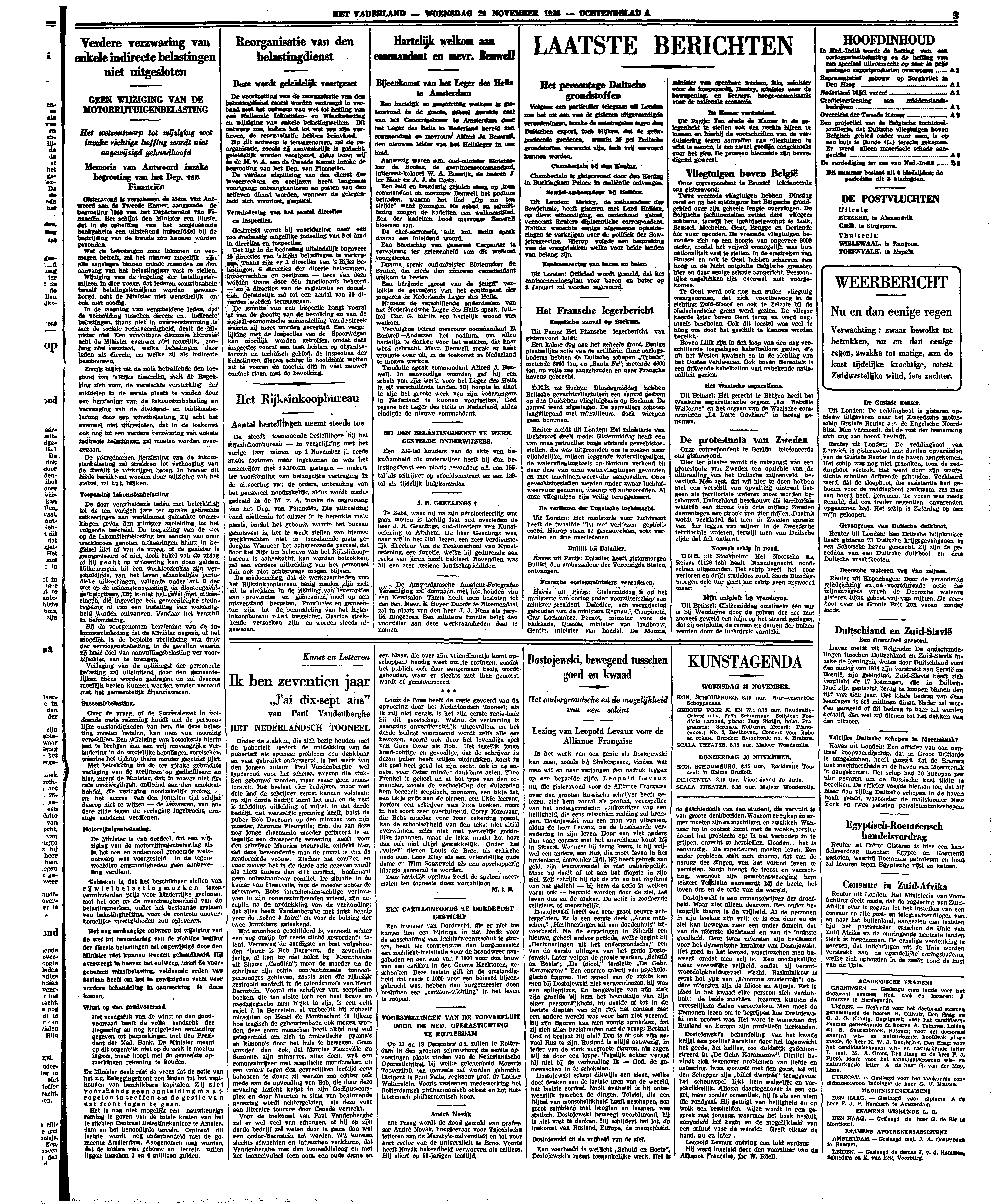 Louis de Bree heeft de regie gevoerd van de opvoering door het Nederlandsch Tooneel; als ik mij niet vergis, is het zijn eerste regie-taak bij dit gezelschap. Welnu, de vertooning is geenszins onverdienstelijk uitgevallen, en het derde bedrijf voornoemd wordt zelfs alle eer bewezen, vooral ook door het levendige spel van Guus Oster als Bob. Het tegelijk jonge hond-achtige en gevoelige, dat de schrijver in dezen puber heeft willen uitdrukken, komt in dit spel heel goed tot zijn recht, ook in de andere, voor Oster minder dankbare acten. Theo Frenkel is geheel en al het type van den romancier, zooals de verbeelding der duizenden hem begeert: sceptisch, mondain, een tikje fat, een tikje grijs aan de slapen, een tikje leeraar, kortom een schrijver van luxe boeken, maar in het soort zeer overtuigend. Corry Korevaar, die Bobs moeder voor haar rekening neemt, kan de schoolschheid van den tekst niet altijd overwinnen, zelfs niet met werkelijk goddelijke japonnen, maar de tekst maakt het haar dan ook niet altijd gemakkelijk. Onder het ‘vulsel’ dienen Louis de Bree, als critische oude oom, Lena Kley als een vriendelijke oude dame en Wim Sonneveld als een opschepperig blaagje genoemd te worden.