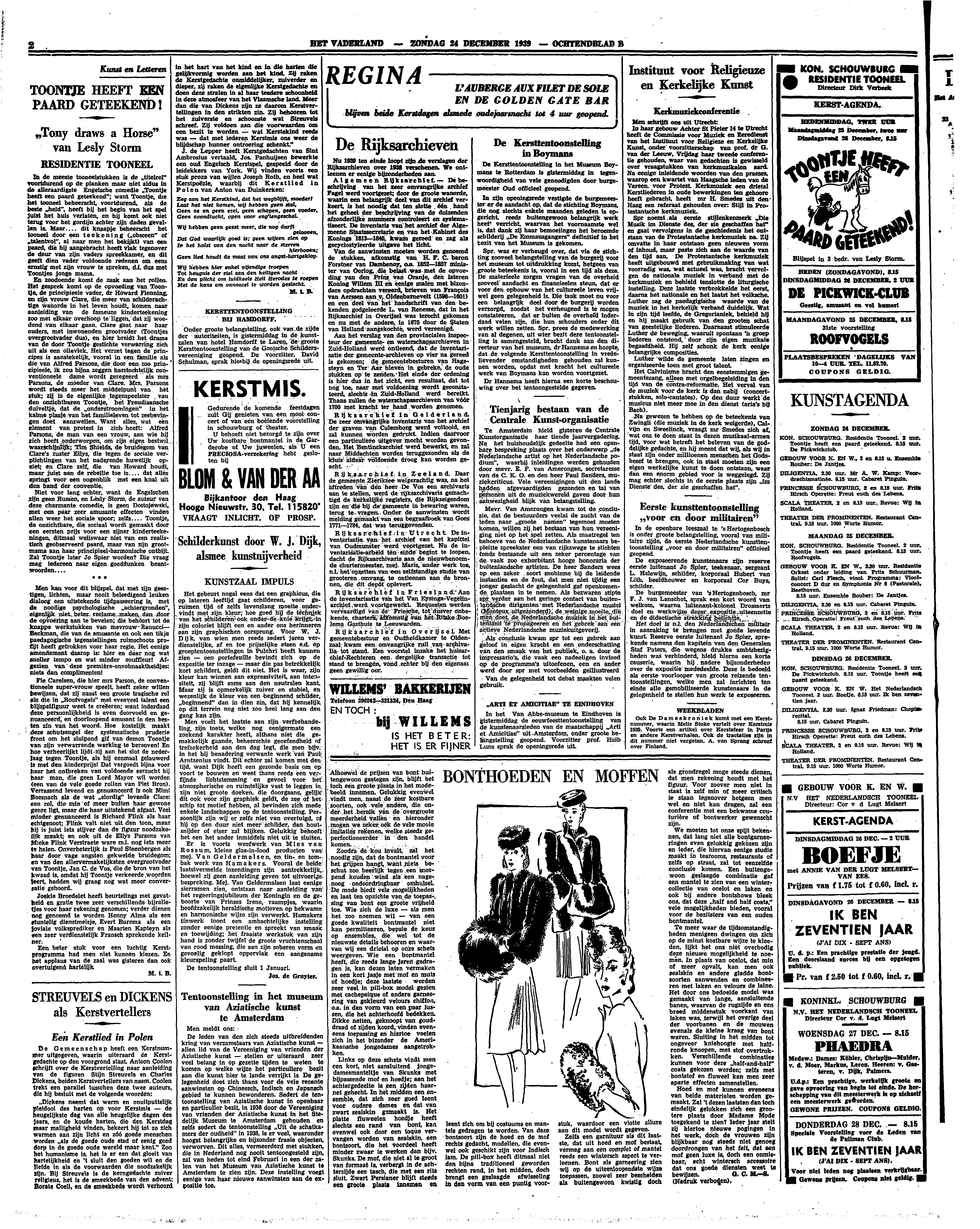 Niet voor lang echter, want de Engelschen zijn geen Russen, en Lesly Storm, de auteur van deze charmante comedie, is geen Dostojewski, met een paar zeer amusante effecten vinden allen weer het sociale spoor; zelfs.... Toontje, de onzichtbare, die sociaal wordt gemaakt door een eersten prijs voor een zijner kinderteekeningen, ditmaal weliswaar niet van een realistisch geobserveerd paard, maar van zijn grootmama aan haar principieel-harmonische ontbijt. Zal Toontje later Jo Spier worden? Die vraag mag iedereen naar eigen goeddunken beantwoorden....
