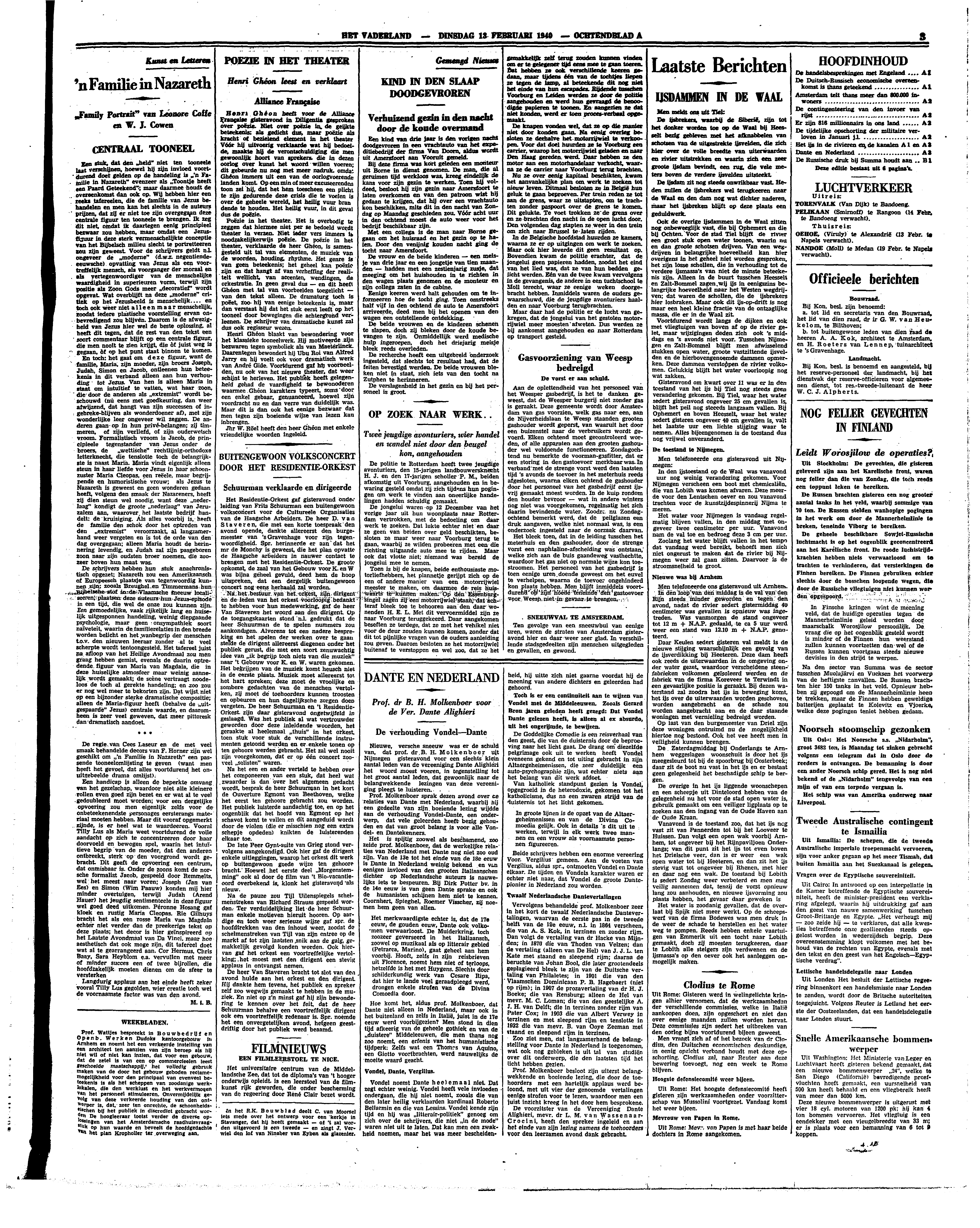 Een stuk, dat den ‘held’ niet ten tooneele laat verschijnen, hoewel hij zijn invloed voortdurend doet gelden op de handeling is ‘'n Familie in Nazareth’ evenzeer als ‘Toontje heeft een Paard Geteekend’; maar daarmee houdt de overeenkomst dan ook op. Wij hebben hier een reeks tafereelen, die de familie van Jezus behandelen en men kan het slechts in de auteurs prijzen, dat zij er niet toe zijn overgegaan deze centrale figuur ten tooneele te brengen. Ik zeg dit niet, omdat ik daartegen eenig principieel bezwaar zou hebben, maar omdat een Jezusfiguur in deze sterk vermenschelijkte conceptie van het Bijbelsch milieu slecht te portretteeren zou zijn geweest. Voor de schrijvers geldt n.l. ongeveer de ‘moderne’ (d.w.z. negentiende-eeuwsche) opvatting van Jezus als een voortreffelijk mensch, als voorganger der moraal en als vertegenwoordiger van de menschelijke waardigheid in superieuren vorm, terwijl zijn positie als Zoon Gods meer ‘decoratief’ wordt opgevat. Wat overblijft na deze ‘moderne’ critiek op het Jezusbeeld is menschelijk.... en toch ook weer niet alleen maar menschelijk, zoodat iedere plastische voorstelling ervan onbevredigend zou blijven. Daarom is de afwezigheid van Jezus hier wel de beste oplossing, al heeft dit tegen, dat de rest van den tekst een soort commentaar blijft op een centrale figuur, die men nooit te zien krijgt, die òf juist weg is gegaan, òf op het punt staat binnen te komen.