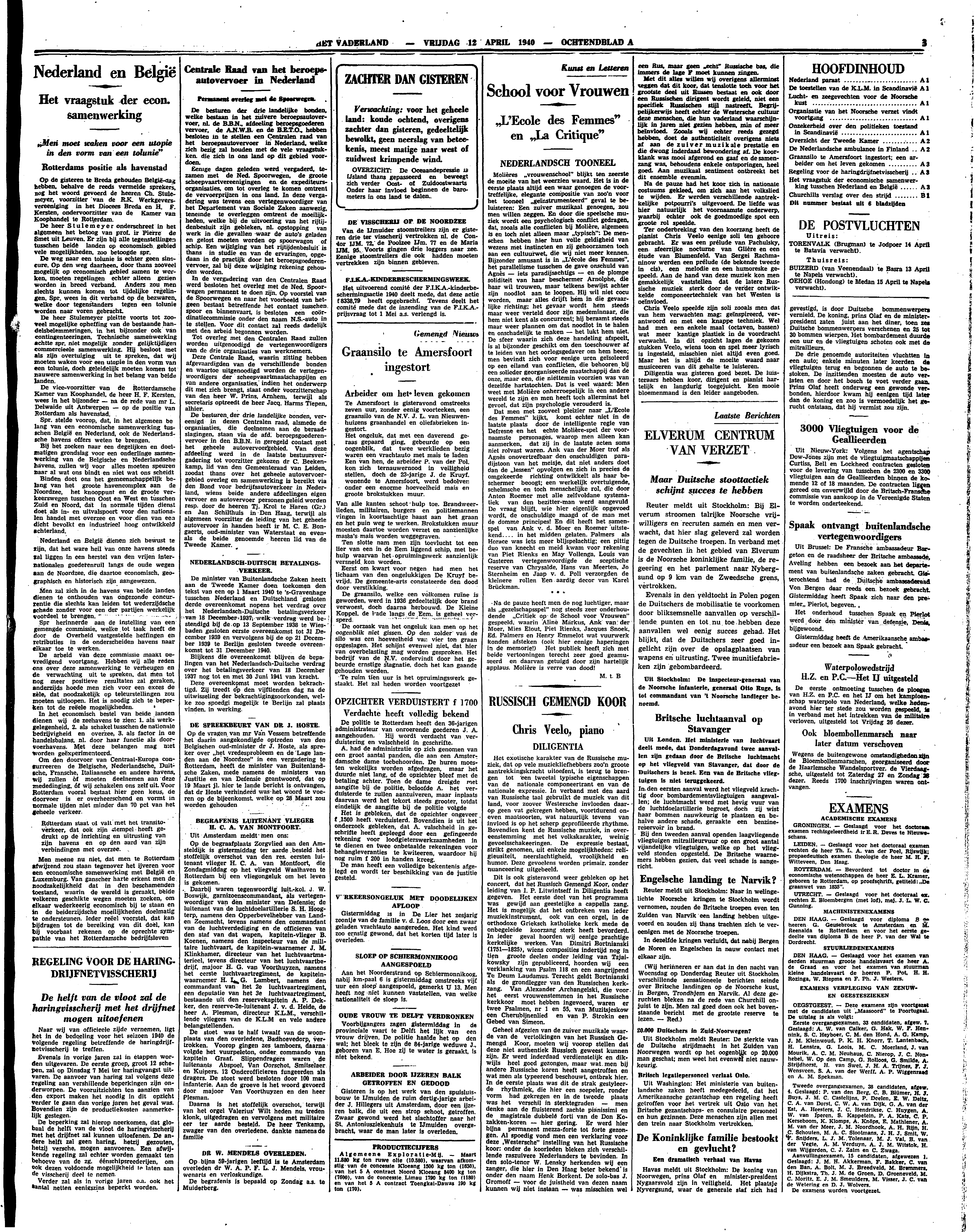 Molières ‘vrouwenschool’ blijkt ten zeerste de moeite van het weerzien waard. Het is in de eerste plaats altijd een waar genoegen de voortreffelijke, elegante compositie van zoo'n voor het tooneel ‘geïnstrumenteerd’ geval te beluisteren: Een zuiver muzikaal genoegen, zou men willen zeggen. En door die speelsche muziek wordt een psychologisch conflict gedragen, dat, zooals alle conflicten bij Molière, algemeen is en toch niet alleen maar ‘typisch’; De menschen hebben hier hun volle geldigheid van wezens met instincten en zij gehoorzamen toch aan een cultuurwet, die wij niet meer kennen. Bijzonder amusant is in ‘L'école des Femmes’, het parallelisme tusschen de gave onschuld van Agnès - iets paradijsachtigs - en de plompe soliditeit van haar beschermer Arnolphe, die haar wil trouwen, maar telkens bewijst achter zijn noodlot aan te loopen. Hij wil niet cocu worden, maar alles drijft hem in die gevaarlijke richting; het gevaar wordt hem steeds maar weer verteld door zijn medeminnaar, die hem niet kent als concurrent; hij beraamt steeds maar weer plannen om dat noodlot in te halen en onschadelijk te maken - het lukt hem niet. De sfeer waarin zich deze handeling afspeelt, is al bijzonder geschikt om den toeschouwer af te leiden van het oorlogsgedaver om hem heen; men bevindt zich voor eenige uren geïsoleerd op een eiland van conflicten, die behooren bij een solieder georganiseerde maatschappij dan de onze, maar een, die niettemin voorzien was van dezelfde hartstochten. Dat is veel waard: Men weet met Molière onherroepelijk in een andere wereld te zijn en men heeft toch allerminst het gevoel, dat zijn psychologie verouderd is.