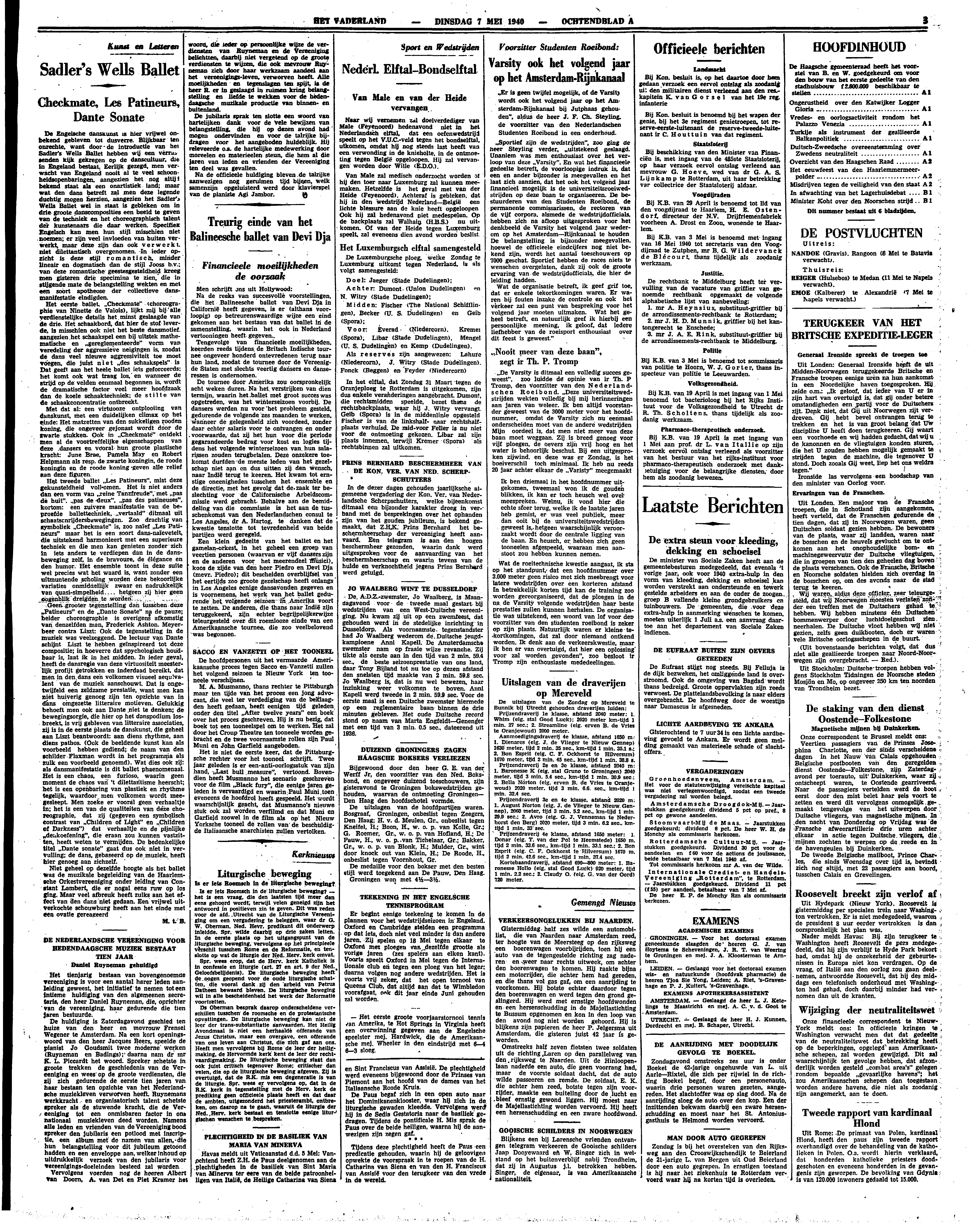 De Engelsche danskunst is hier vrijwel onbekend gebleven tot dusverre. Blijkbaar ten onrechte, want door de introductie van het Sadler's Wells Ballet hebben wij een verrassenden kijk gekregen op de danscultuur, die in Engeland bestaat. Eerlijk gezegd, men verwacht van Engeland nooit al te veel schoonheidsopenbaringen, aangezien het nog altijd bekend staat als een onartistiek land; maar wat den dans betreft zal men deze legende duchtig mogen herzien, aangezien het Sadler's Wells Ballet wel in staat is gebleken om in drie groote danscomposities een beeld te geven van de techniek en het choreographisch talent der kunstenaars die daar werken. Specifiek Engelsch kan men hun stijl misschien niet noemen; er zijn veel invloeden van buiten verwerkt, maar deze zijn dan ook verwerkt, niet dilettantisch overgenomen. In ieder opzicht is deze stijl romantisch, minder lineair en dogmatisch dan de stijl Jooss b.v.: van deze romantische geestesgesteldheid kreeg men gisteren drie specimina te zien, die in stijgende mate de belangstelling wekten en met een soort apotheose der collectieve dansmanifestatie eindigden.