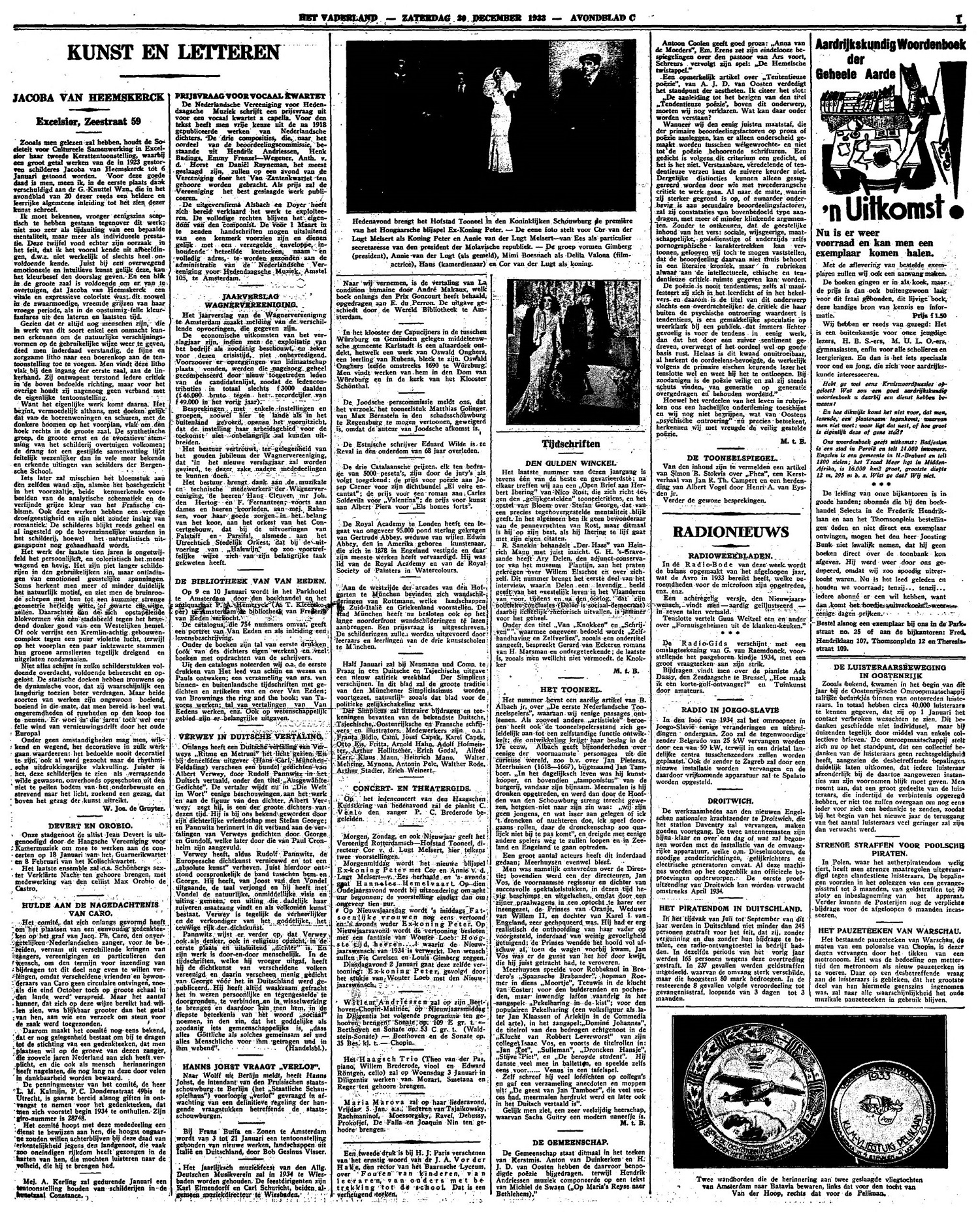 Antoon Coolen geeft goed proza: ‘Anna van de Moeders’, Em. Erens zet zijn eindelooze bespiegelingen over den pastoor van Ars voort, Schreurs vervolgt zijn spel: ‘De Hemelsche twistappel’.